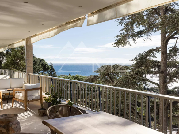 Enjoy a spacious living room opening onto a sunny, south-facing terrace with breathtaking panoramic sea views. The fully equipped kitchen, featuring high-quality materials, is ideal for food lovers.