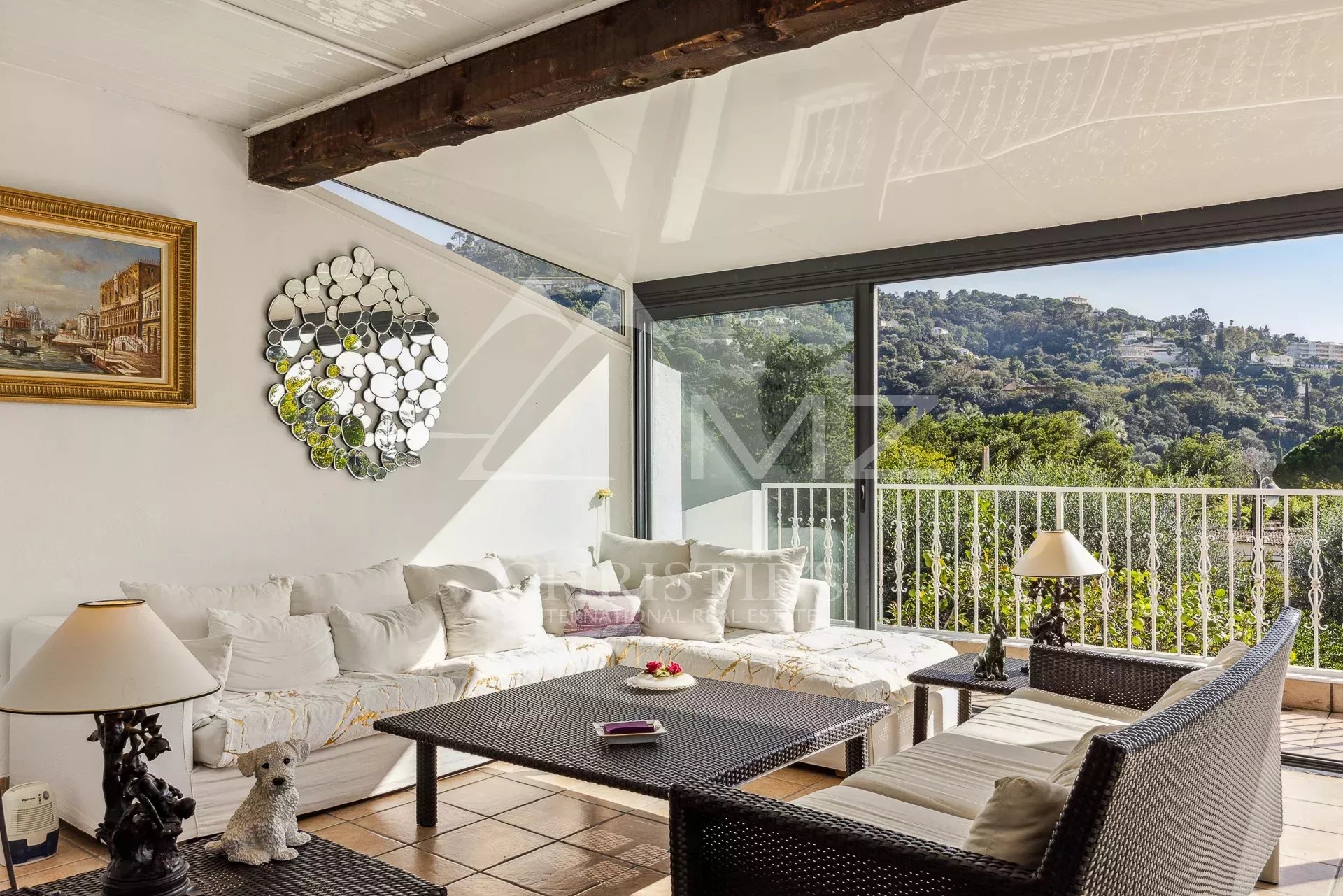 Prime location in a sought-after California neighborhood, not far from the city center, for this elegant family home of approximately 229 square meters. Featuring timeless décor, the property boasts a welcoming living room with a fireplace extending onto a sunroom, a dining room, a second living room, a fully equipped kitchen, and five bedrooms. Several terraces and a two-car carport complete the property. A beautiful Mediterranean garden of approximately 1,134 square meters features a swimming pool with a bar. The property enjoys a commanding position with unobstructed views of the surrounding hills. A rare find.