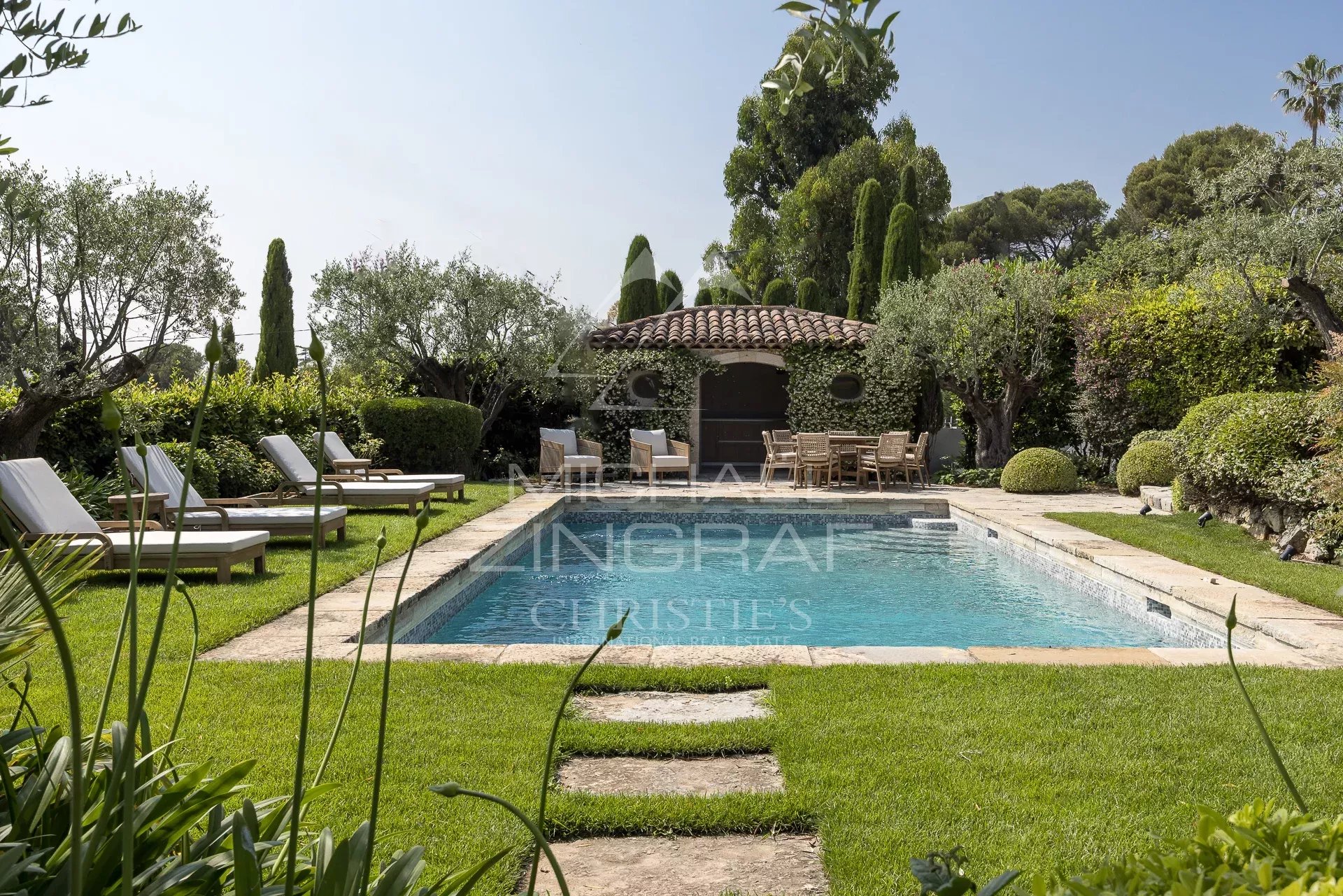 Recently renovated and redesigned by a renowned interior designer, the villa offers approximately 418 m² of living space on two levels, within a landscaped garden of 2,510 m².