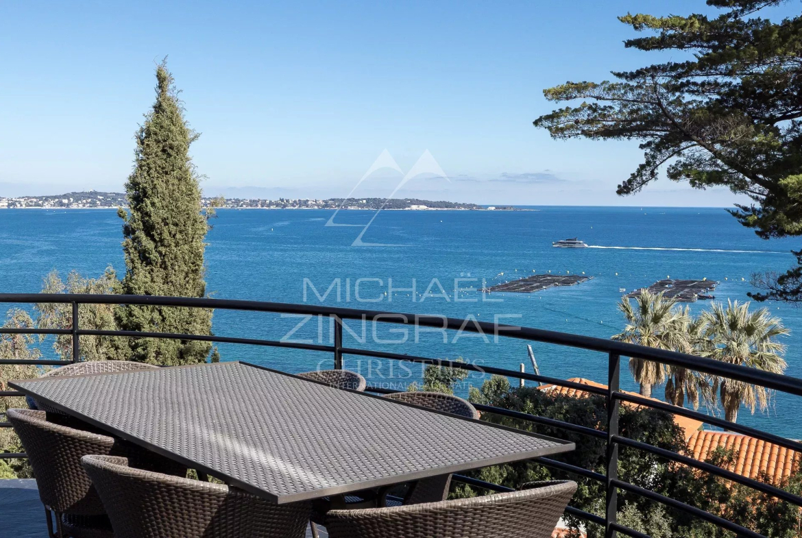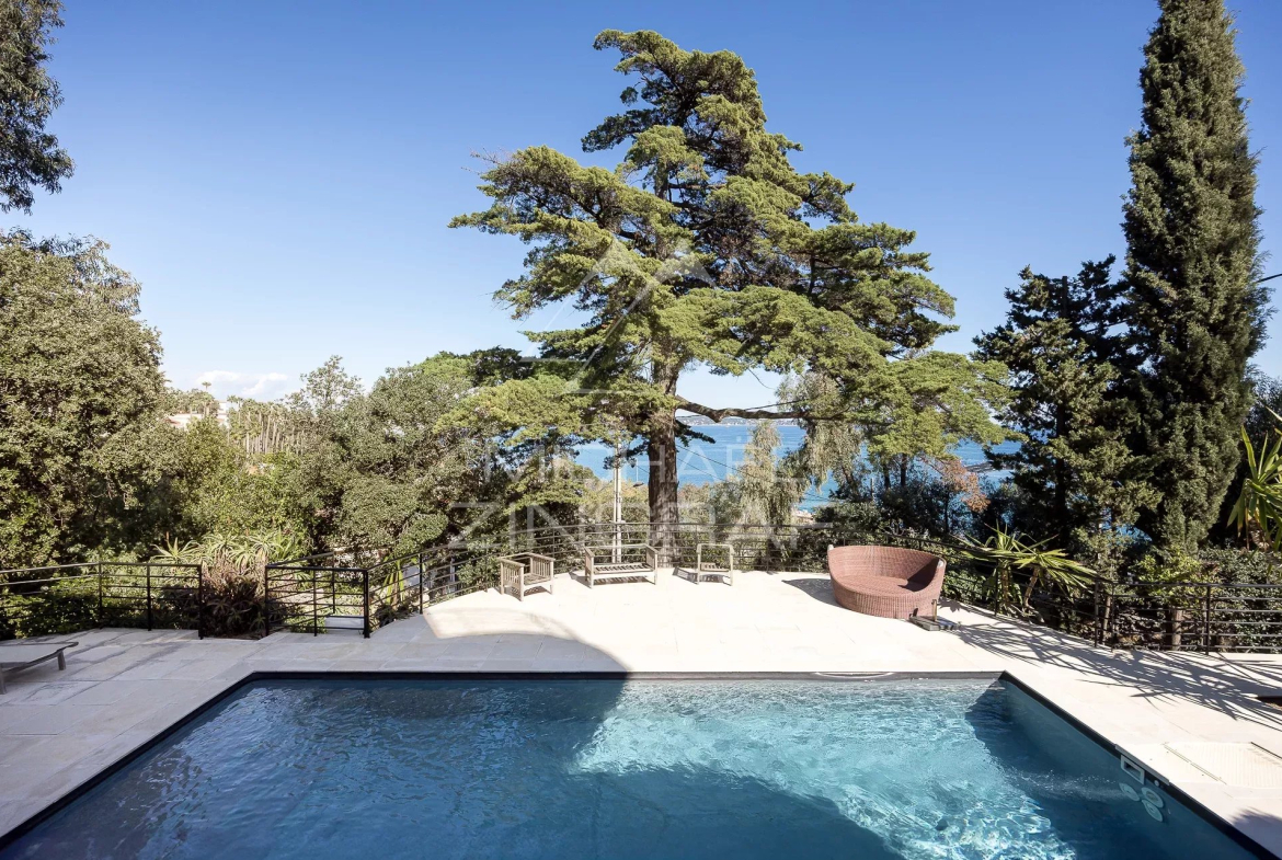 Located in the prestigious district of California in Cannes, this superb villa from the 1950s offers an exceptional setting with a breathtaking panoramic view of Cap d'Antibes and the Lérins Islands.
