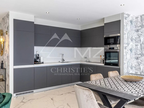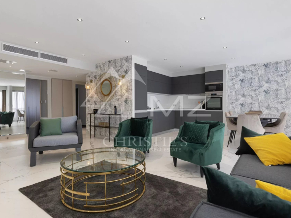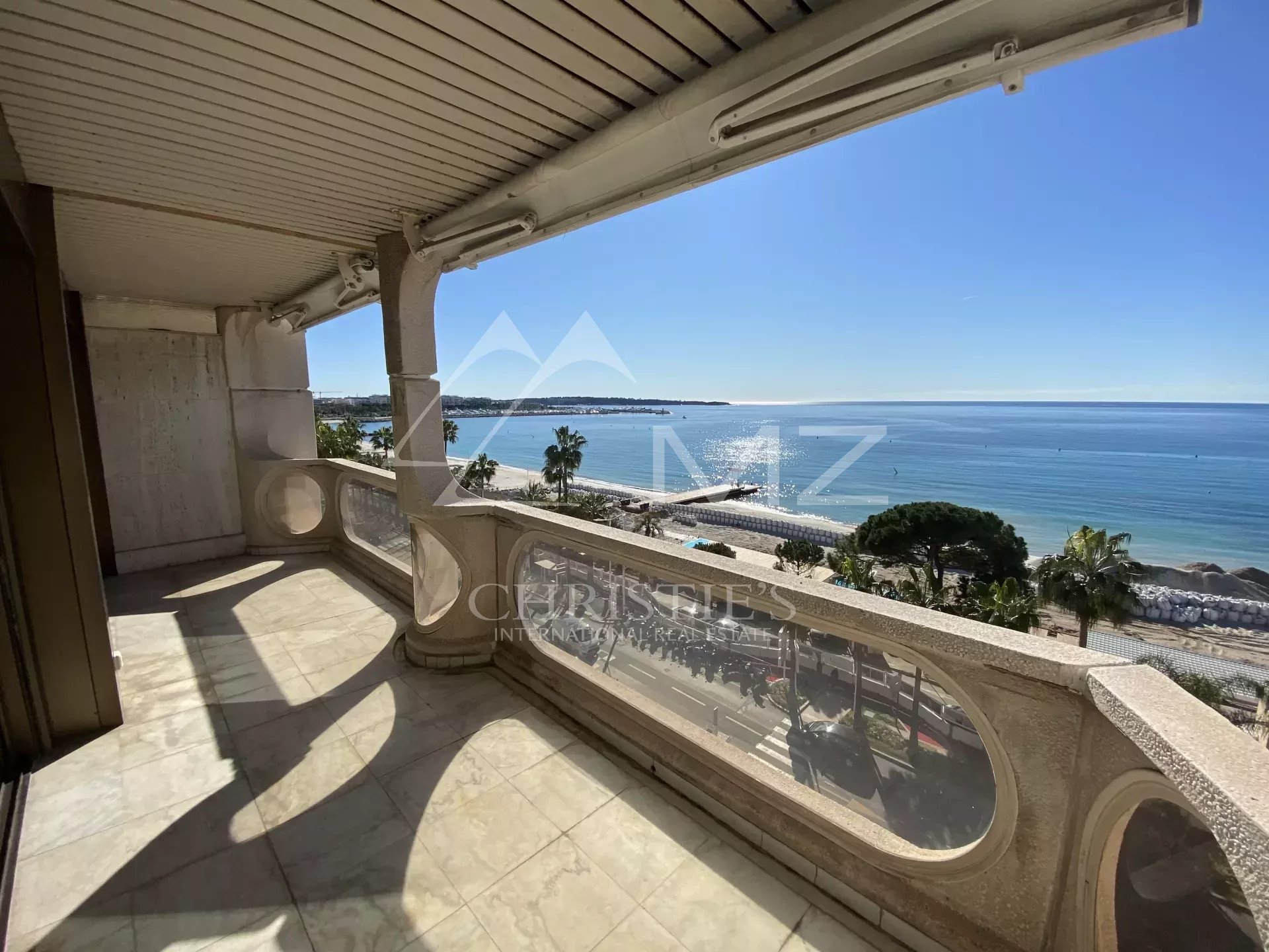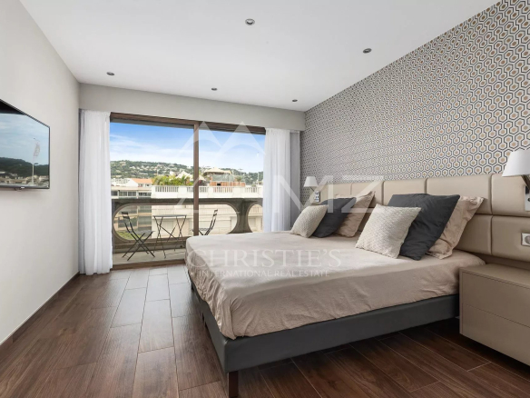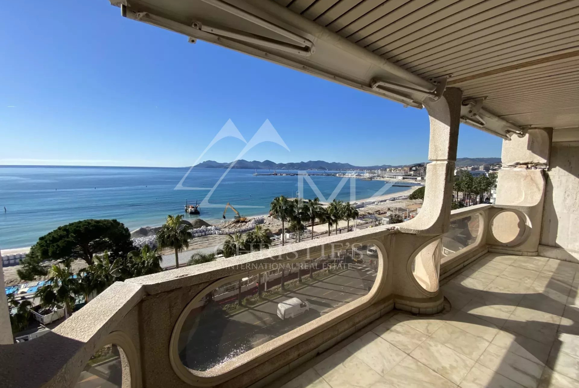 Ideally located on the Croisette, this approximately 100 sq m apartment with sea views and a large terrace comprises: a living room with terrace access, a fitted kitchen, two bedrooms with en-suite shower rooms. Parking space. High-end amenities.