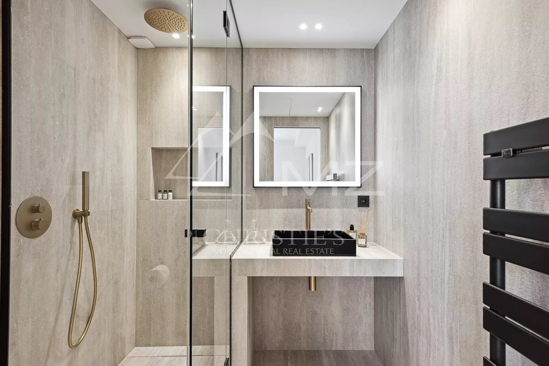 The apartment comprises a spacious living room with a fully equipped open-plan kitchen, all opening onto a beautiful terrace with sea views, and two en-suite bedrooms. A cellar completes this exceptional property.