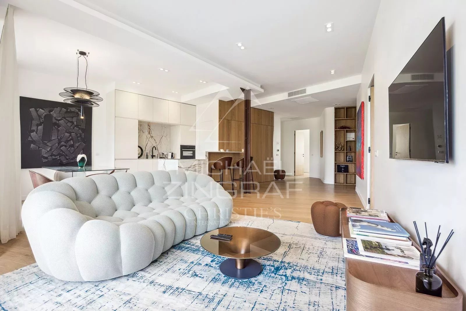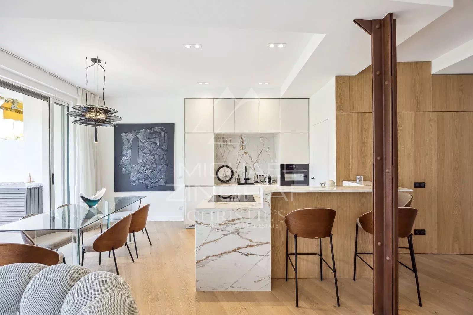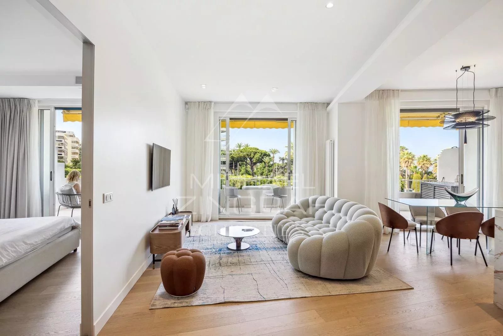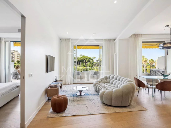 Ideally located on the Croisette, this approximately 110 sq m apartment comprises: a spacious living/dining room opening onto a terrace, an open-plan kitchen, and three en-suite bedrooms, each with its own shower room and bathroom. The apartment is very bright.