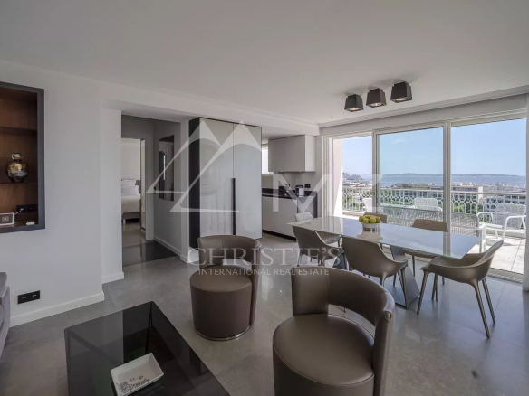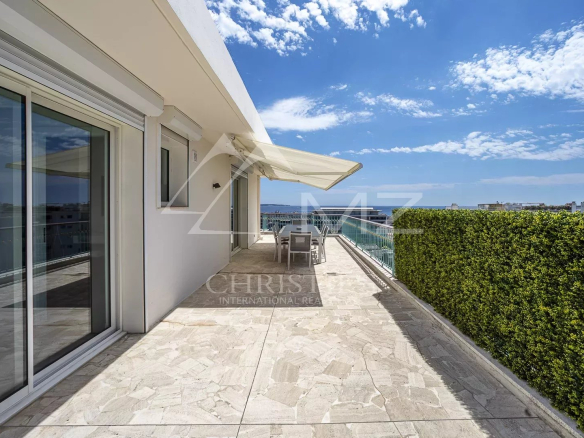 Completely renovated, superb penthouse on the Croisette of approximately 110 sq m, comprising a living room with terrace access, a fully equipped kitchen, three en-suite bedrooms. Large terrace of 220 sq m.