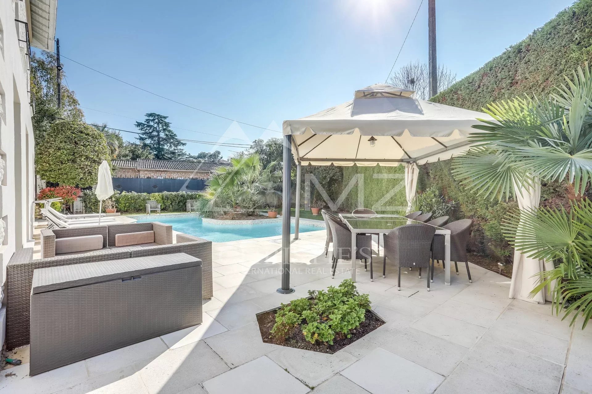 Rare find. Ideally located in the highly sought-after Basse Californie area, just a few minutes' walk from the Croisette and the beaches, this beautiful property offers peace and privacy. It comprises two houses: a 245 sq m (approx.) Art Deco-style main house and a separate 97 sq m (approx.) guest house.