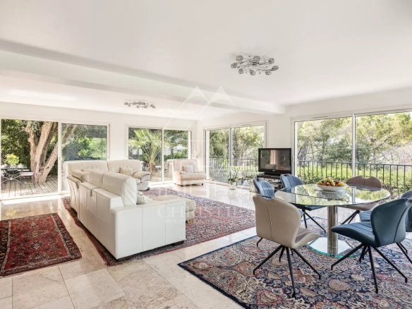 Located in the sought-after Oxford residential area of Cannes, close to schools and major roads, this charming villa offers a peaceful living environment with panoramic views of the city. Built over three levels, the ground floor comprises a garage and a self-contained apartment with a bedroom, shower room, living room, and kitchen. On the first floor, a spacious and bright living room and a separate kitchen open onto a pleasant terrace, along with a bright bedroom. The top floor features two en-suite bedrooms, each with a shower room, opening onto a large, sunny terrace. The beautifully landscaped grounds include a wooden outbuilding with a terrace and swimming pool. Ideal for a family seeking comfort and tranquility.