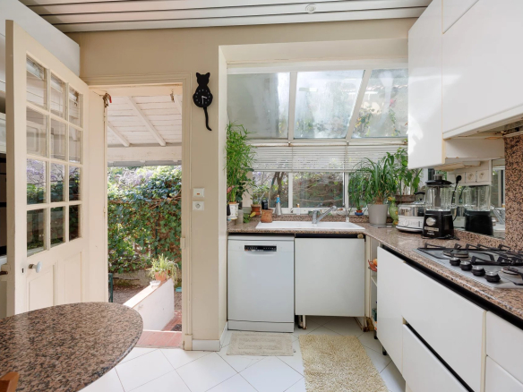 Built in 1928 in a charming style characteristic of that era, the villa comprises a living/dining room with a fireplace, offering a bright and inviting living space thanks to its windows. A separate kitchen (with direct access to the garden), three bedrooms, an office, two bathrooms, and a separate toilet complete the living area.