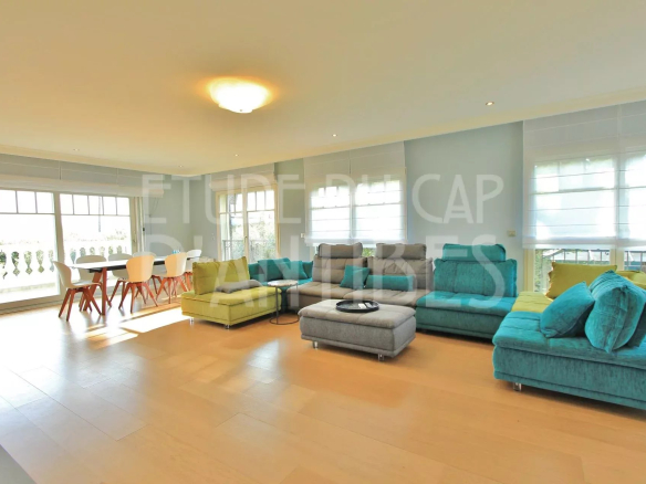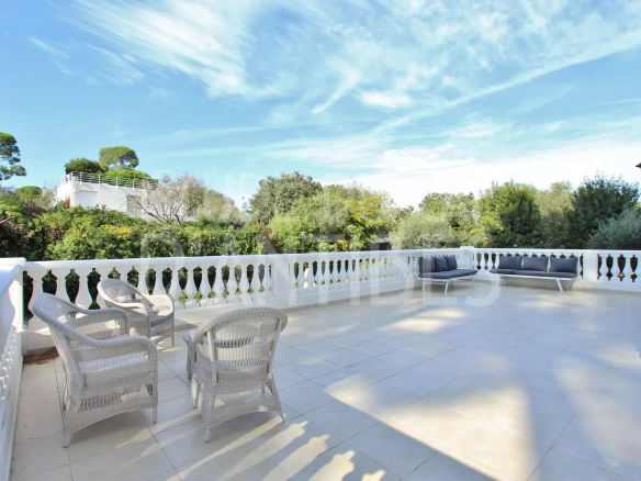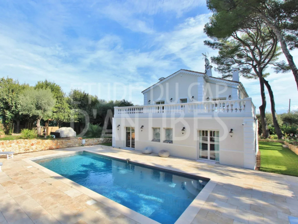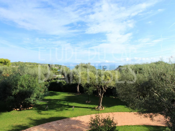 Magnificent villa of approximately 250m² of living space, ideally located near the beaches and the sea, in a quiet and green setting. Following a complete renovation in 2019, it boasts a spacious living room with a semi-open kitchen opening onto a terrace with views of the sea and the Alps, 5 bedrooms, and 5 bathrooms or shower rooms with toilets. The beautiful 1440m² garden features a heated swimming pool and a vegetable garden. High-quality renovation and amenities include an alarm and video surveillance system, air conditioning, and electric gates and roller shutters.