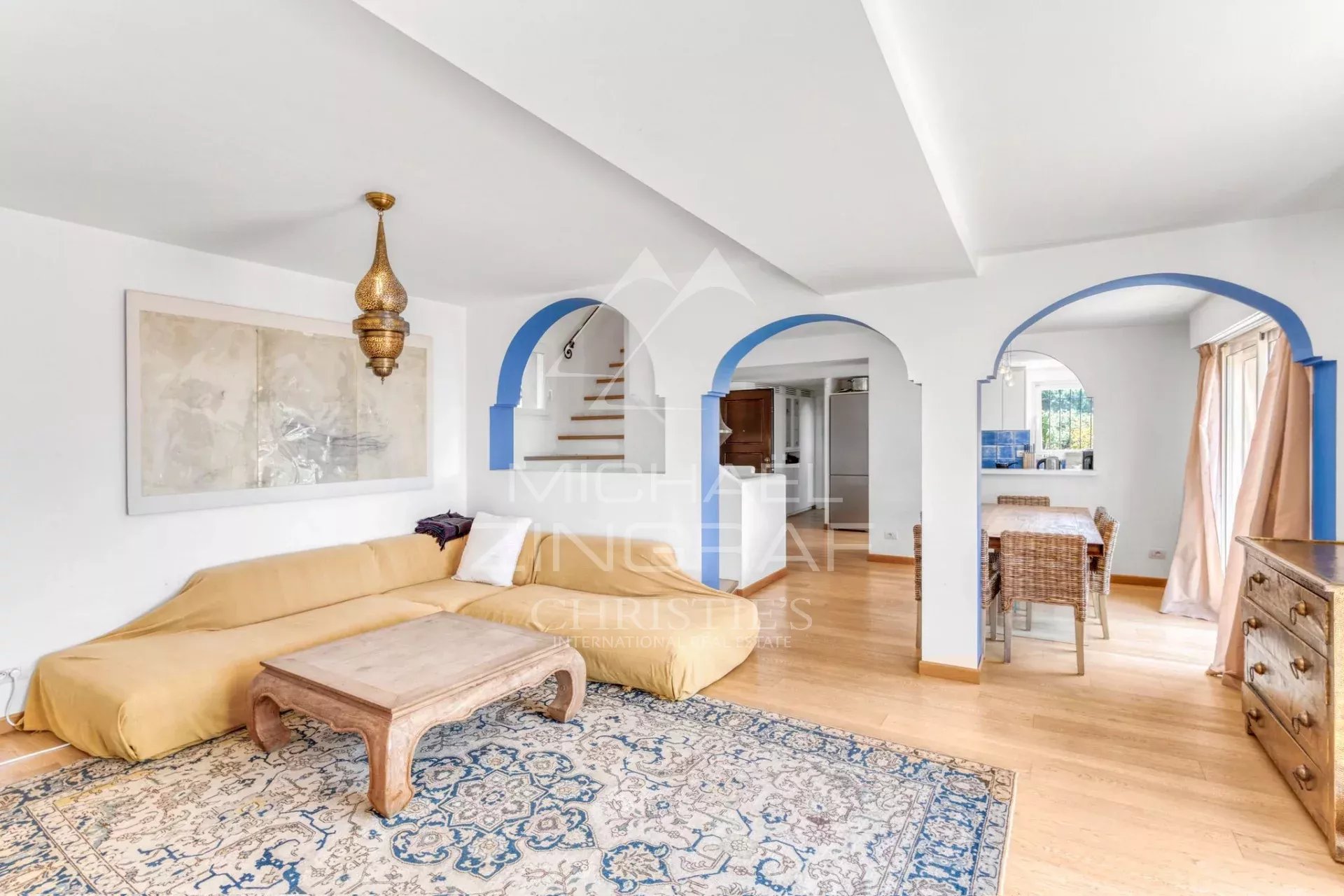 Located just minutes from the Principality, this family villa offers a privileged setting for holidays under the sun of the French Riviera. Nestled in the heart of a landscaped garden, it charms with its warm atmosphere, blending Mediterranean influences with oriental touches.