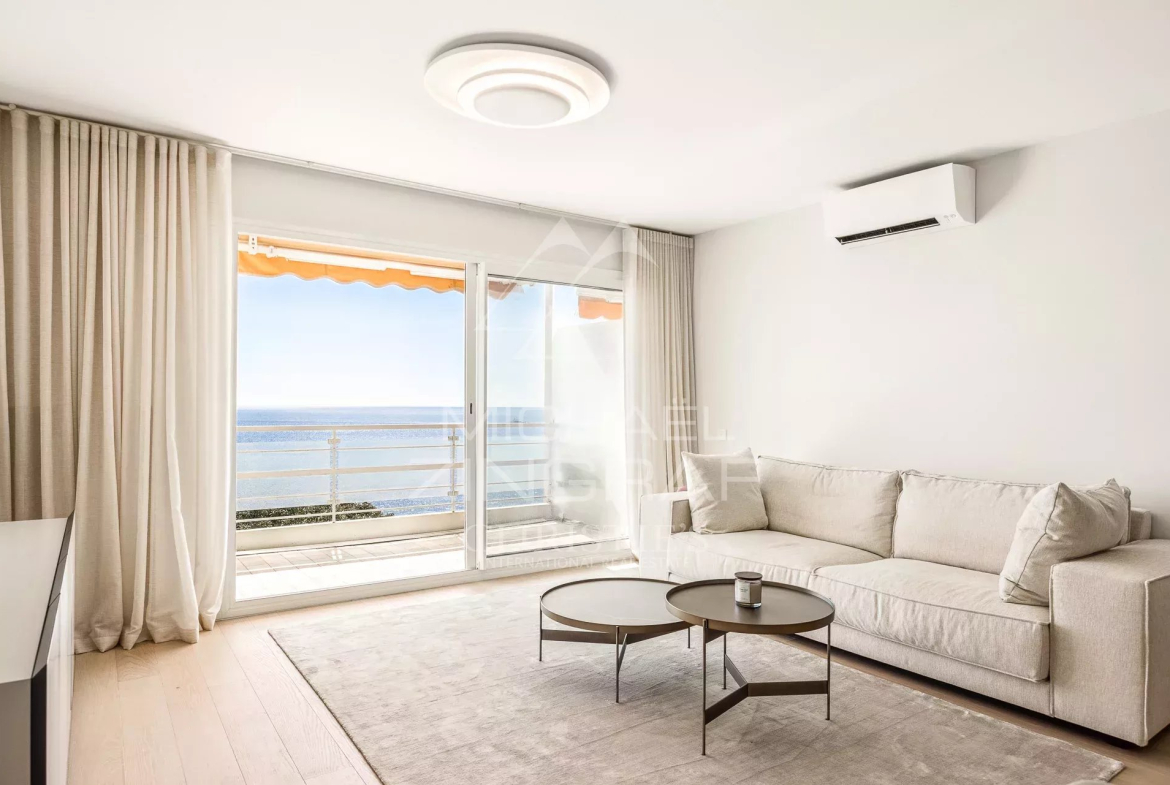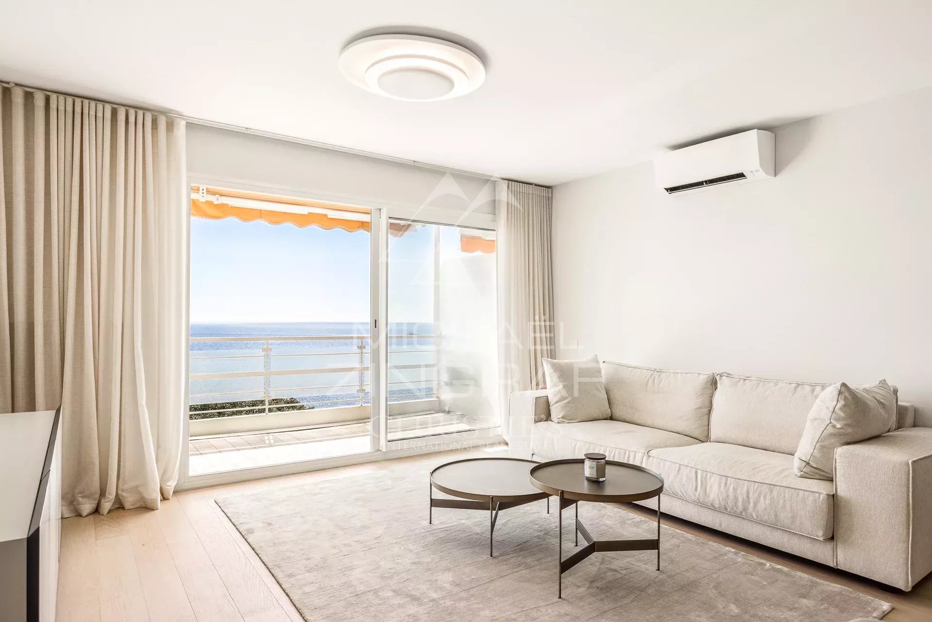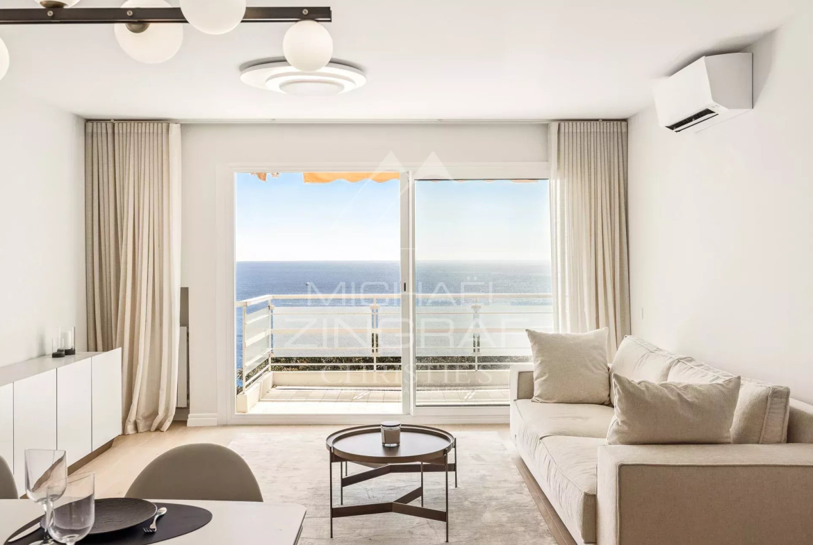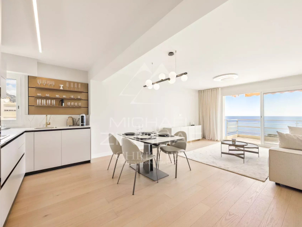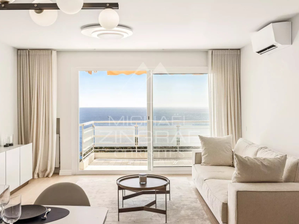Magnificent 3-room apartment of 78 m², located on a high floor and opening onto beautiful terraces, a few minutes walk from the city center of Cap d'Ail, Monaco and the Marquet beaches.