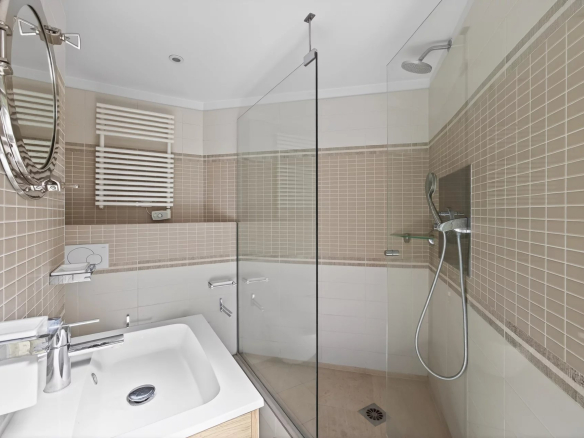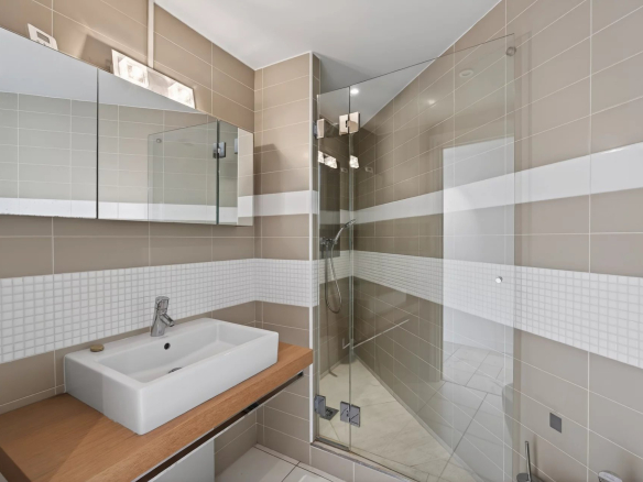 The 65m² apartment is very well laid out. It comprises a bright living room with a fully equipped open-plan kitchen, opening onto a beautiful 27m² terrace overlooking the sea. The entrance hall leads to a bedroom with its own shower room, toilet, and dressing room, a second bedroom, and a separate shower room with toilet.