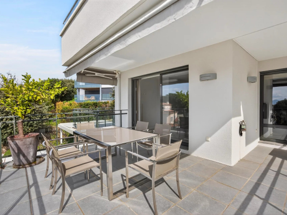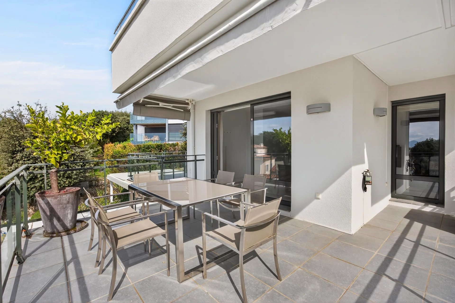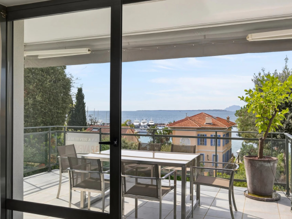 CAP D'ANTIBES – Panoramic sea view and ideally located at the beginning of Cap d'Antibes, west side, in the immediate vicinity of the prestigious Belles Rives hotel, sandy beaches and restaurants, this apartment is located in a small, high-standard, modern and recent residence, consisting of only three floors comprising eight apartments.