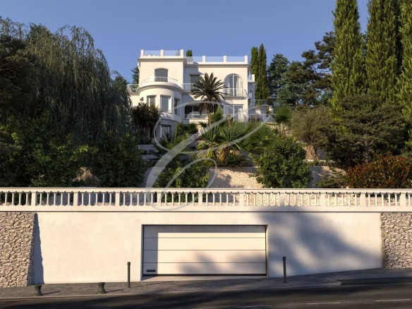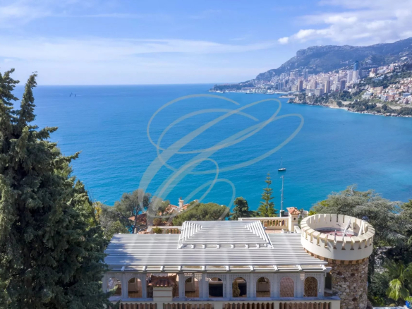 Belle Époque property, 10 minutes from Monaco, comprising a main villa with a garage and a separate apartment on a garden of approximately 2,490 m².