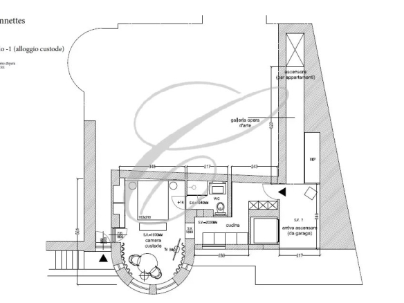 Garden level: two-room apartment.