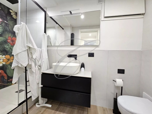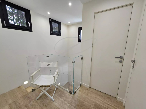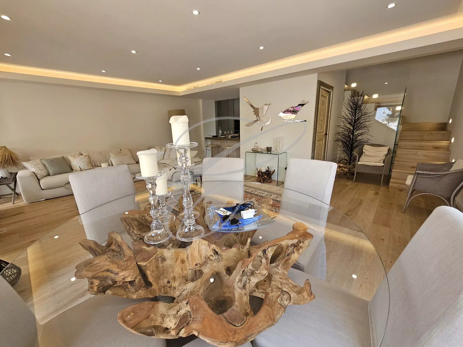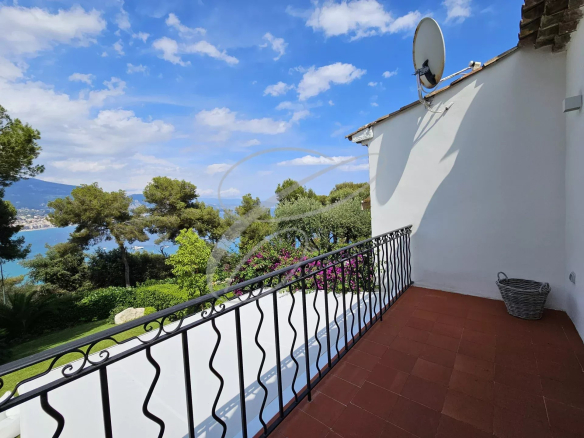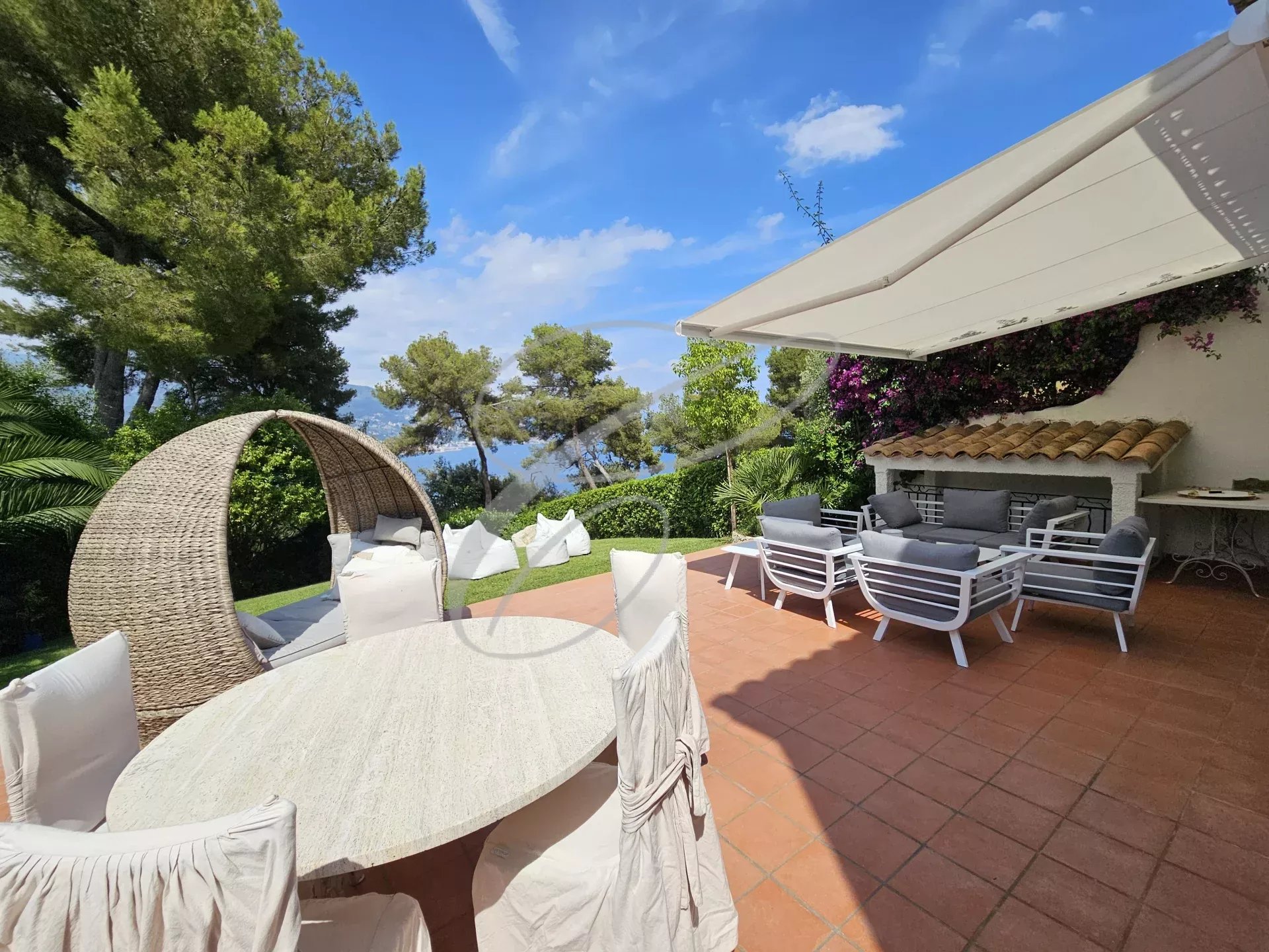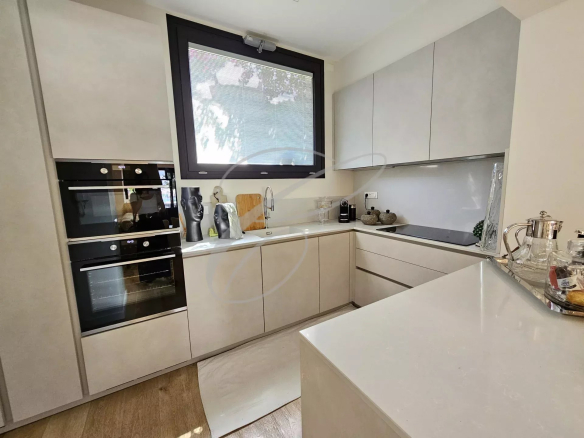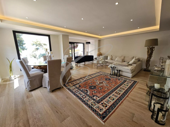Near Monaco, in a secure residence with concierge, swimming pool, and sauna, a superb renovated villa nestled in a garden with sea views. It