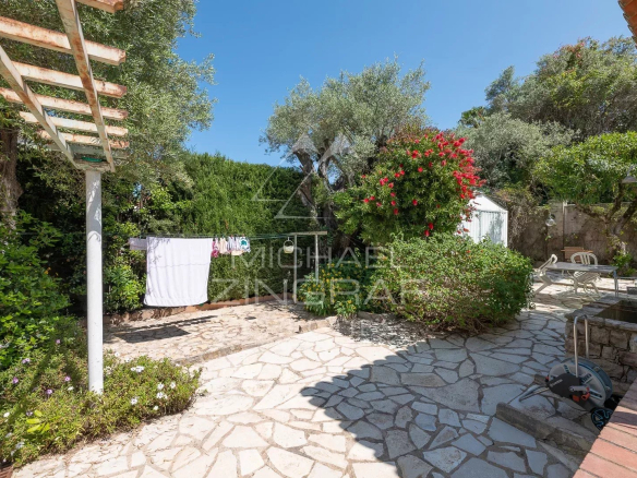 Charming 165 m² villa nestled in the heart of lush greenery. Upon entering, you'll be charmed by a spacious, bright living room with a dining room and an elegant sun-drenched veranda, perfect for enjoying the mild Mediterranean climate. A separate kitchen completes the living space.