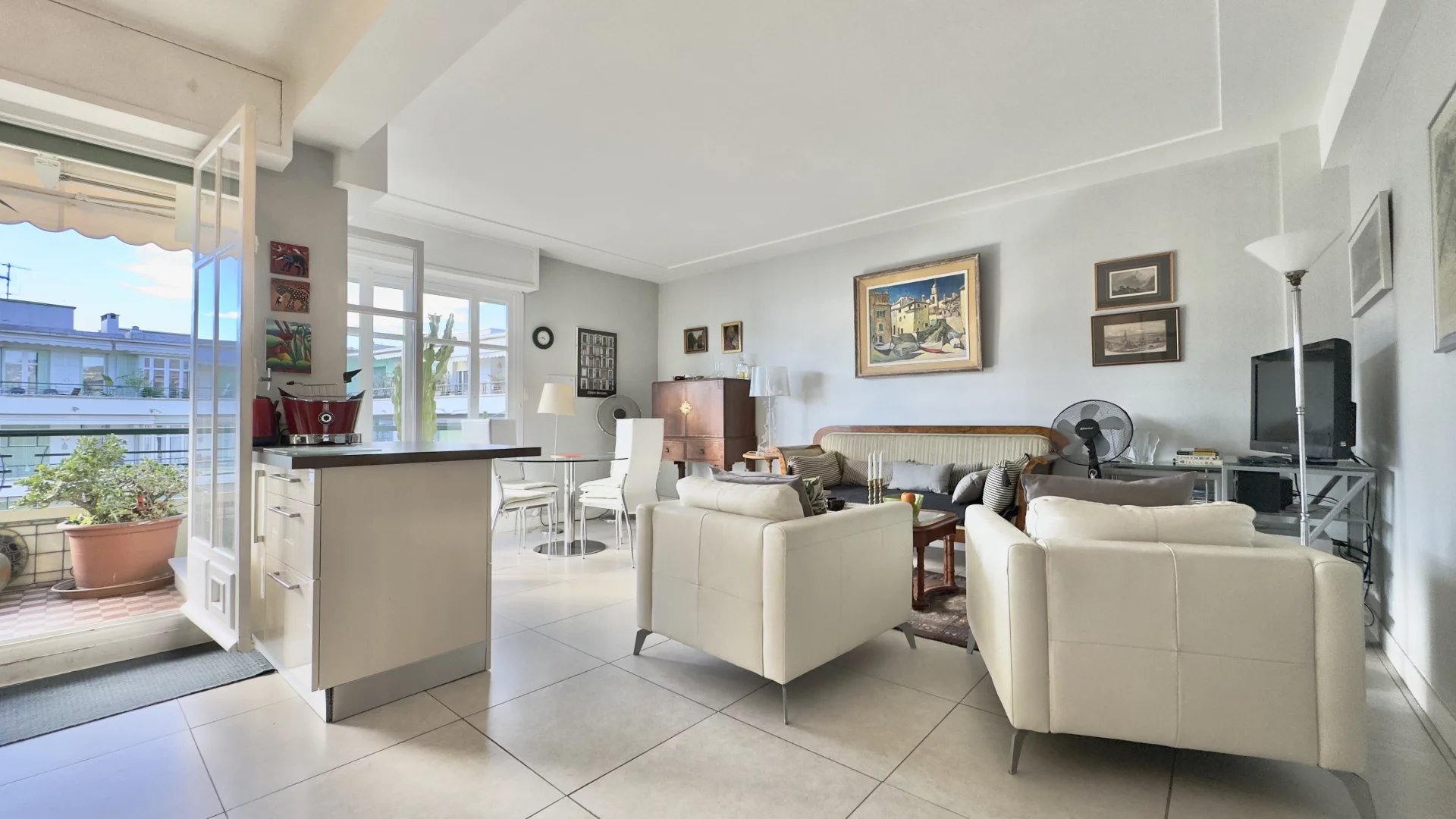 The apartment, with its east/west orientation, offers a fluid layout: an entrance hall leads to all the main rooms, including a spacious living room bathed in light thanks to its southwest exposure.