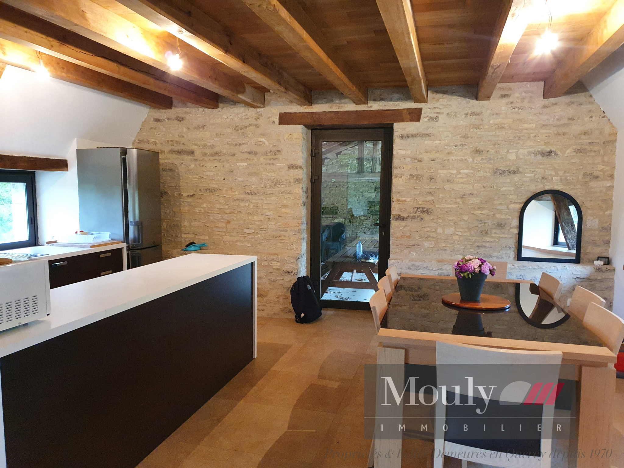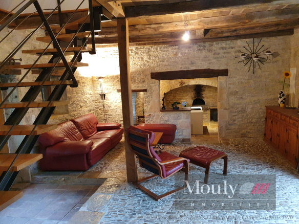 The guest house/gîte includes a fully equipped kitchen, a living/dining room, two bedrooms, and one bathroom. This historic building has been renovated while preserving original features such as the bread oven and the wine press.