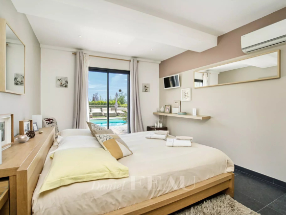 Upstairs, a superb master suite with bathroom, spacious dressing room and private terrace invites you to enjoy a panoramic view combining sea and nature.