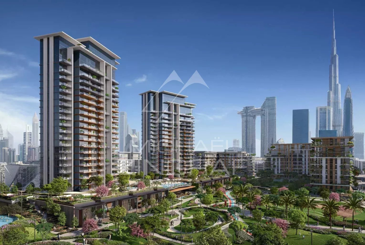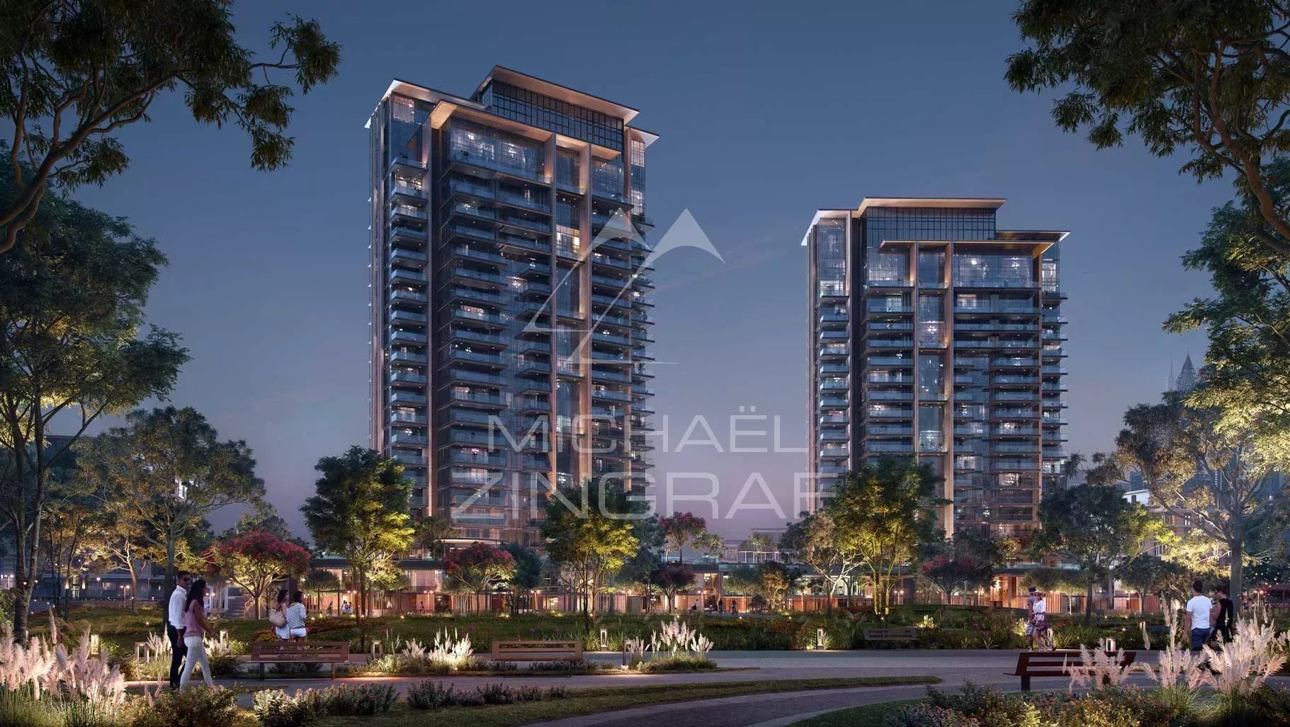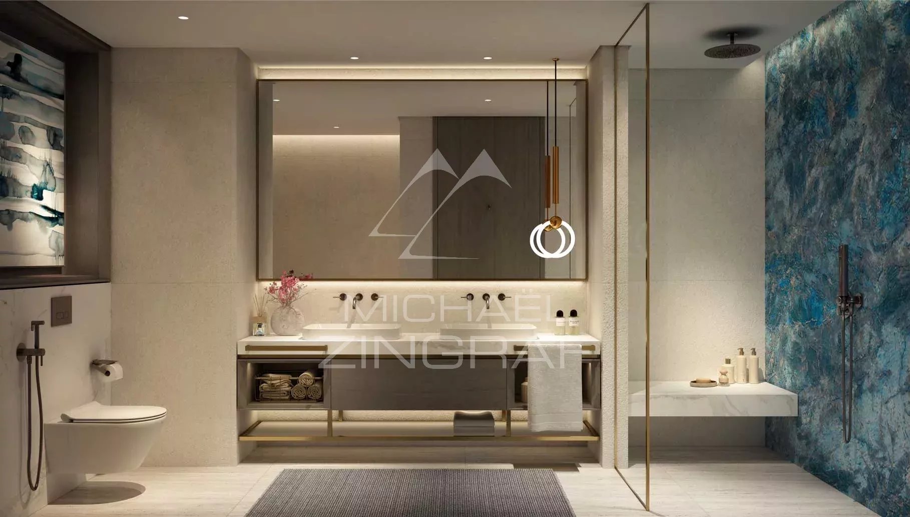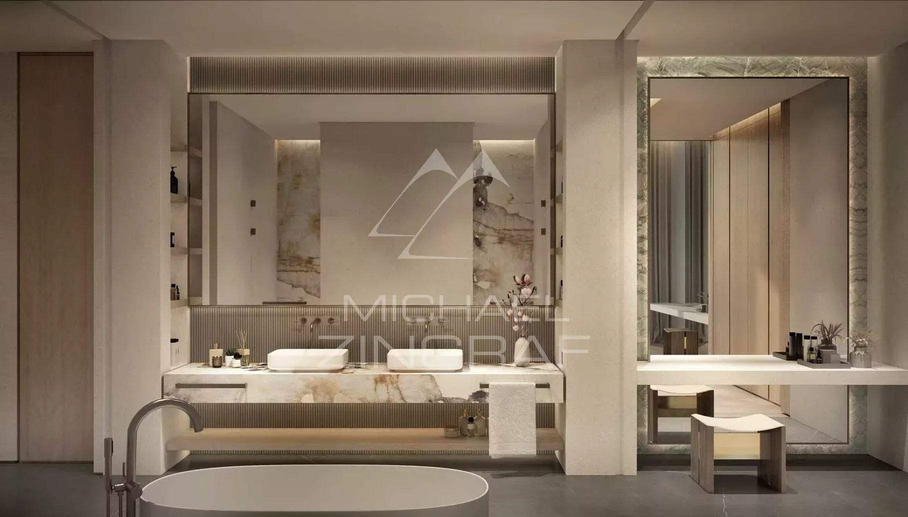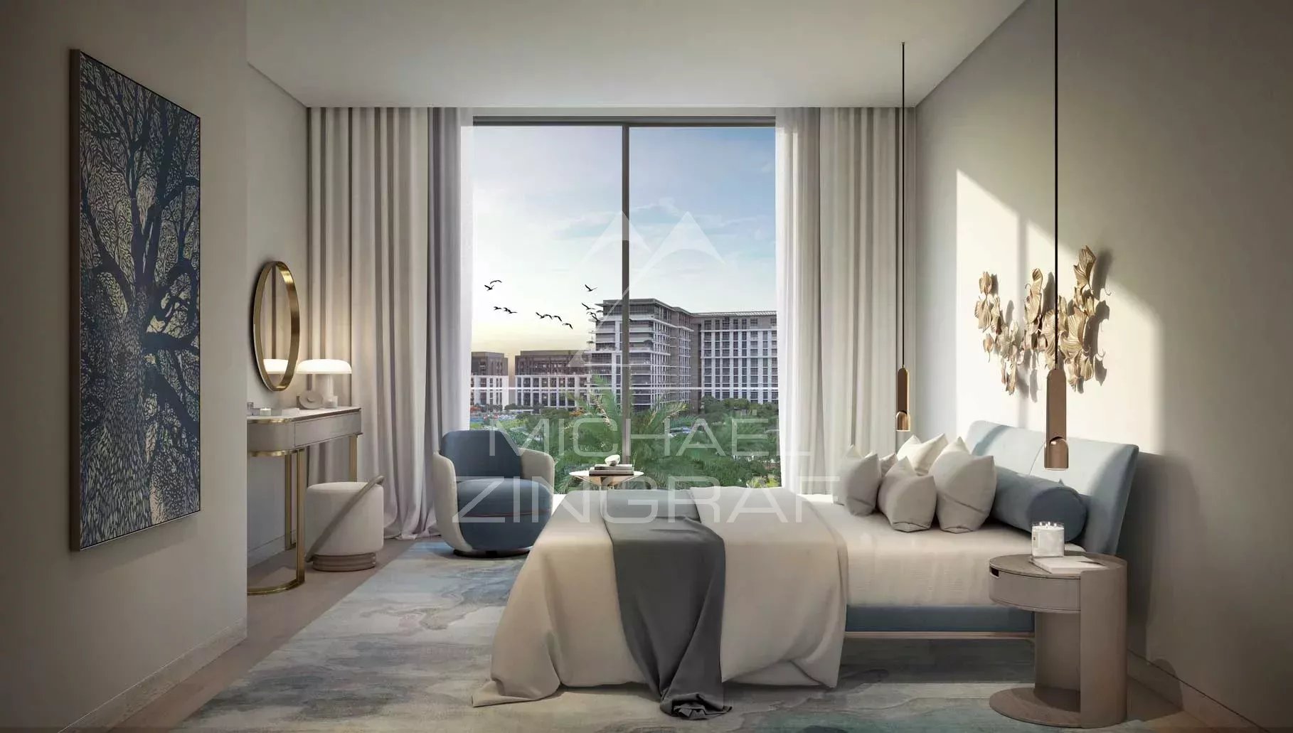 A contemporary living environment enhanced by high-end finishes and panoramic corner views. Bedrooms feature floor-to-ceiling windows offering breathtaking views of the park. Spacious bathrooms with a diverse selection of premium materials and fixtures.