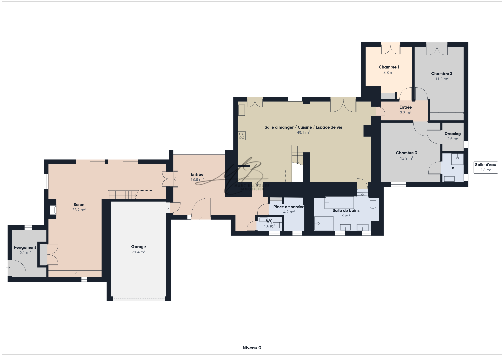 The warm and open reception areas are perfect for sharing moments together. The modern, fully equipped kitchen opens onto a welcoming dining room, while the bright living room offers direct access to the garden and swimming pool.