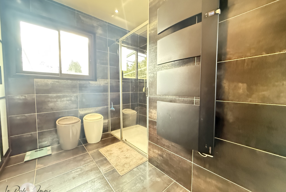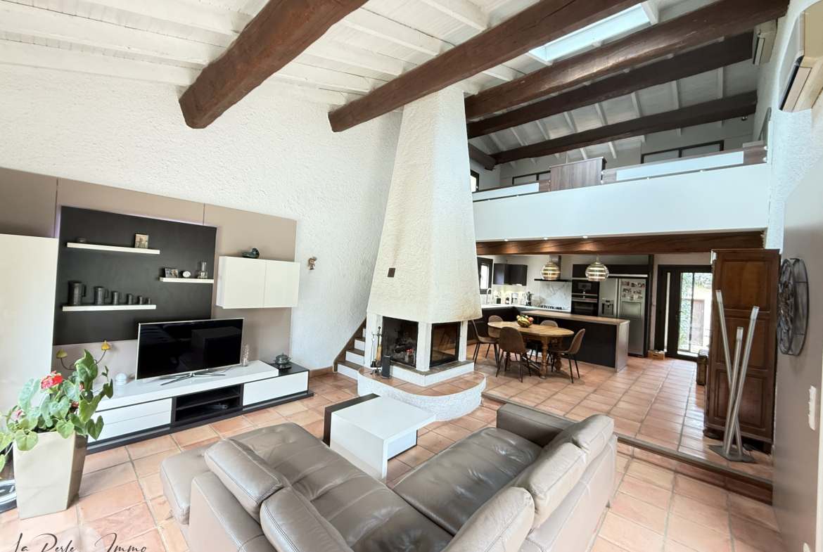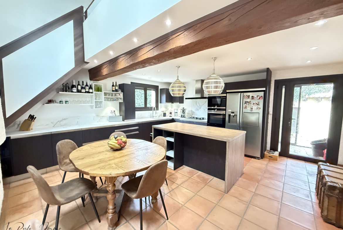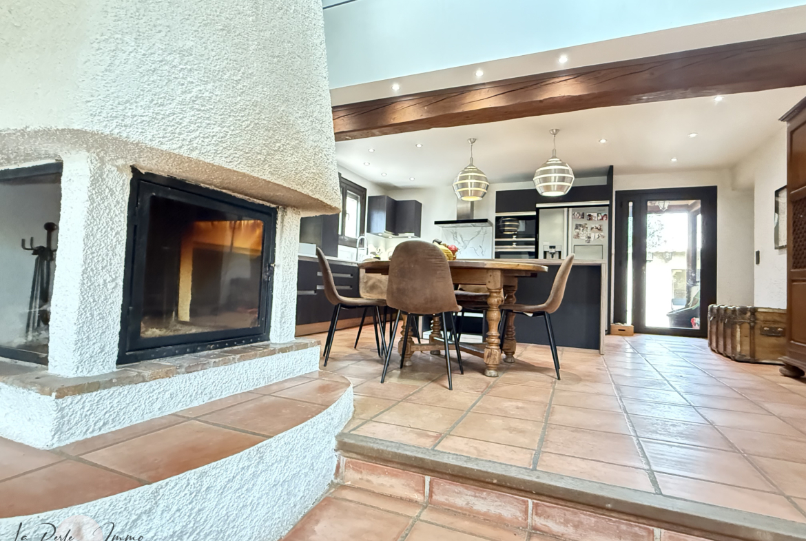 Edified on a large plot of 2122 m2, this 4 -faces villa combines tradition and comfort. Designed in a classic architectural style, it will seduce you with its spacious interior, where every detail has been designed to offer a warm and welcoming atmosphere. The entrance hall opens onto a large bright living room, embellished with a central closed hearth fireplace and a cathedral ceiling with exposed beams. The living space gives directly on a 60 m2 terrace, equipped with a barbecue, ideal for your moments of open -air conviviality.