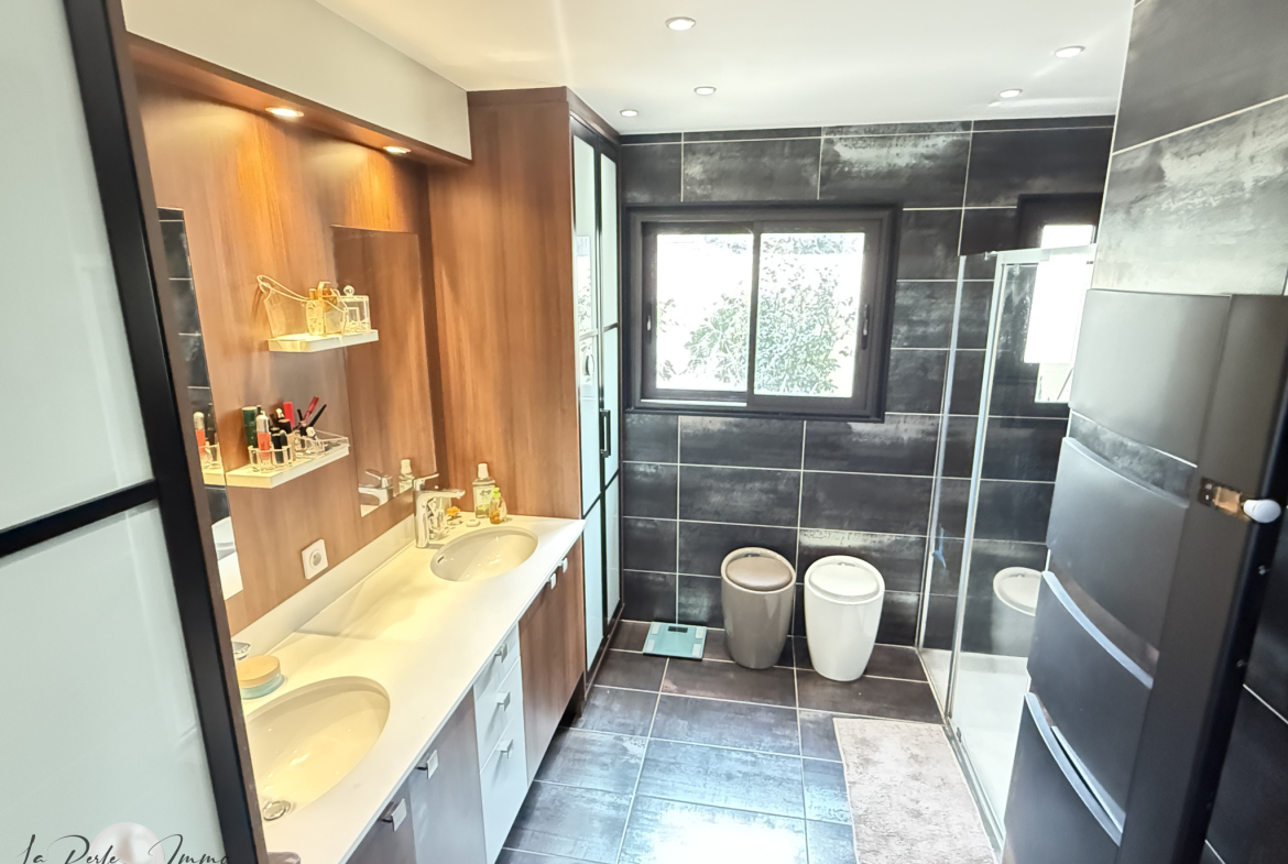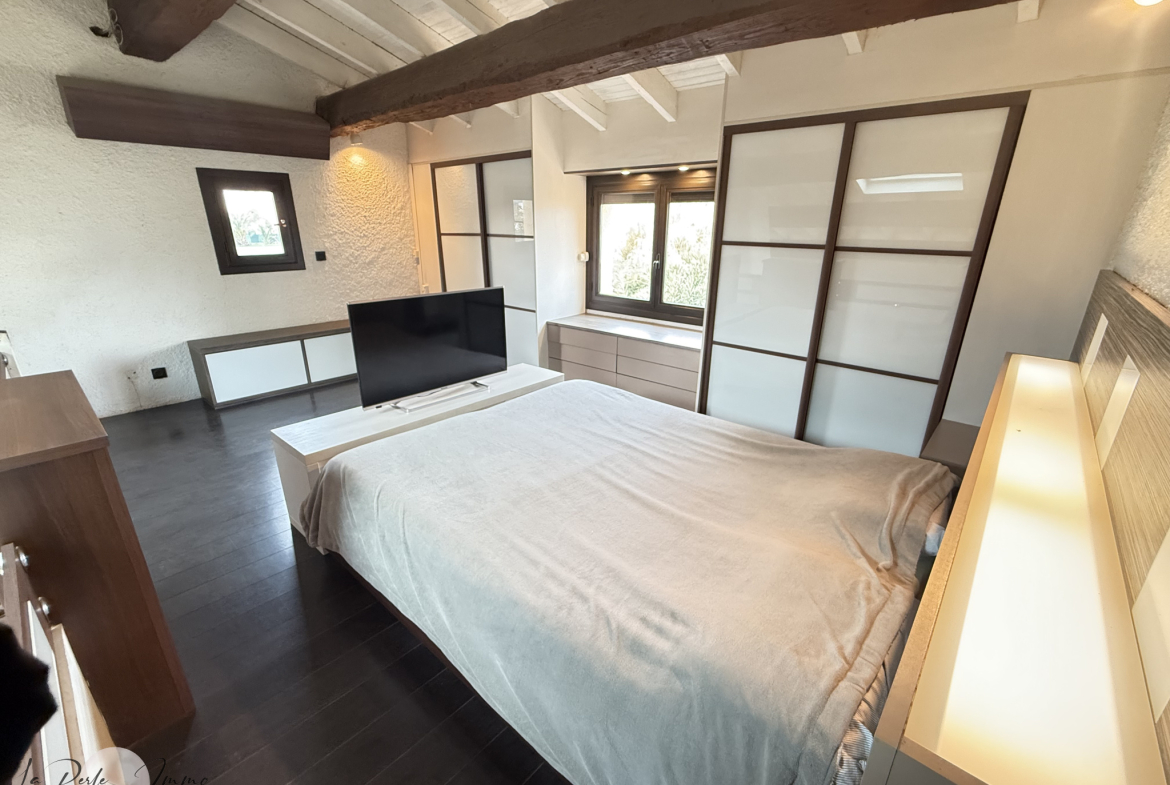 The villa has 3 bedrooms, including a sumptuous master suite of more than 20 m2 on the mezzanine, offering a breathtaking view of the stay. A modern bathroom, as well as an independent toilet complement the interior layout.