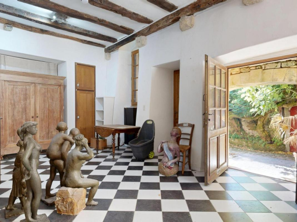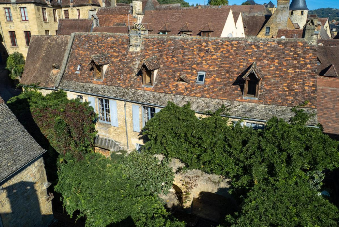Enveloped in wisteria, this large, historic house, although located in the city center, is an enchanting haven of tranquility, with its low walls and secluded corners, and multiple terraces offering complete privacy.