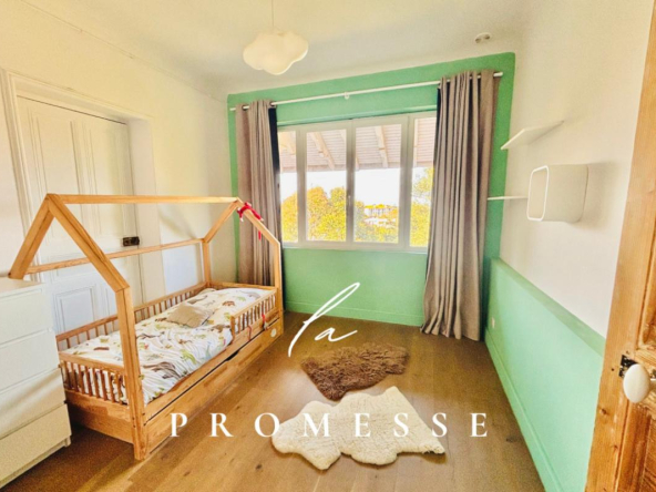 A REAL GEM – LA PROMESSE presents this charming 134 sq m (116 sq m Carrez law) apartment in Anglet, near Biarritz and the Aguilera district. Located in a historic residence nestled within a 4,000 sq m private park, offering complete privacy, this apartment is situated on the second and top floor. It features an entrance hall, a spacious and bright 43 sq m living room facing south with remarkable views of the wooded park, and an open-plan kitchen. There are two bedrooms, a bathroom with shower, and a separate toilet. A third bedroom, accessible via a mezzanine level, has an en-suite bathroom and a flexible space. The property includes access to the shared park, a cellar, and two parking spaces. A rare find on the market.