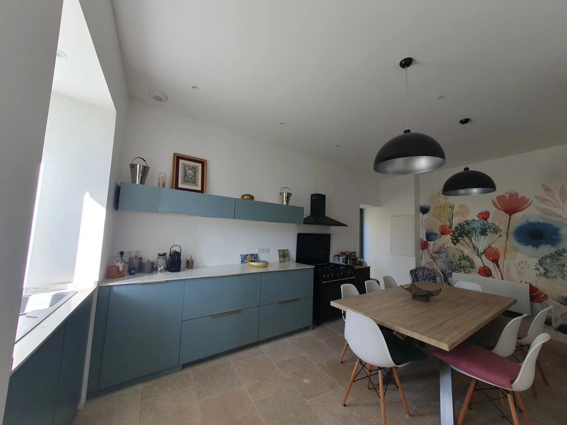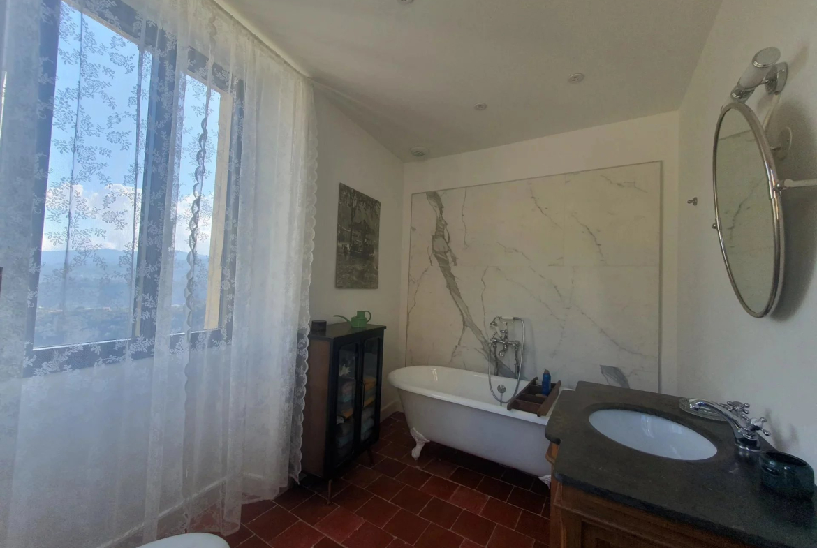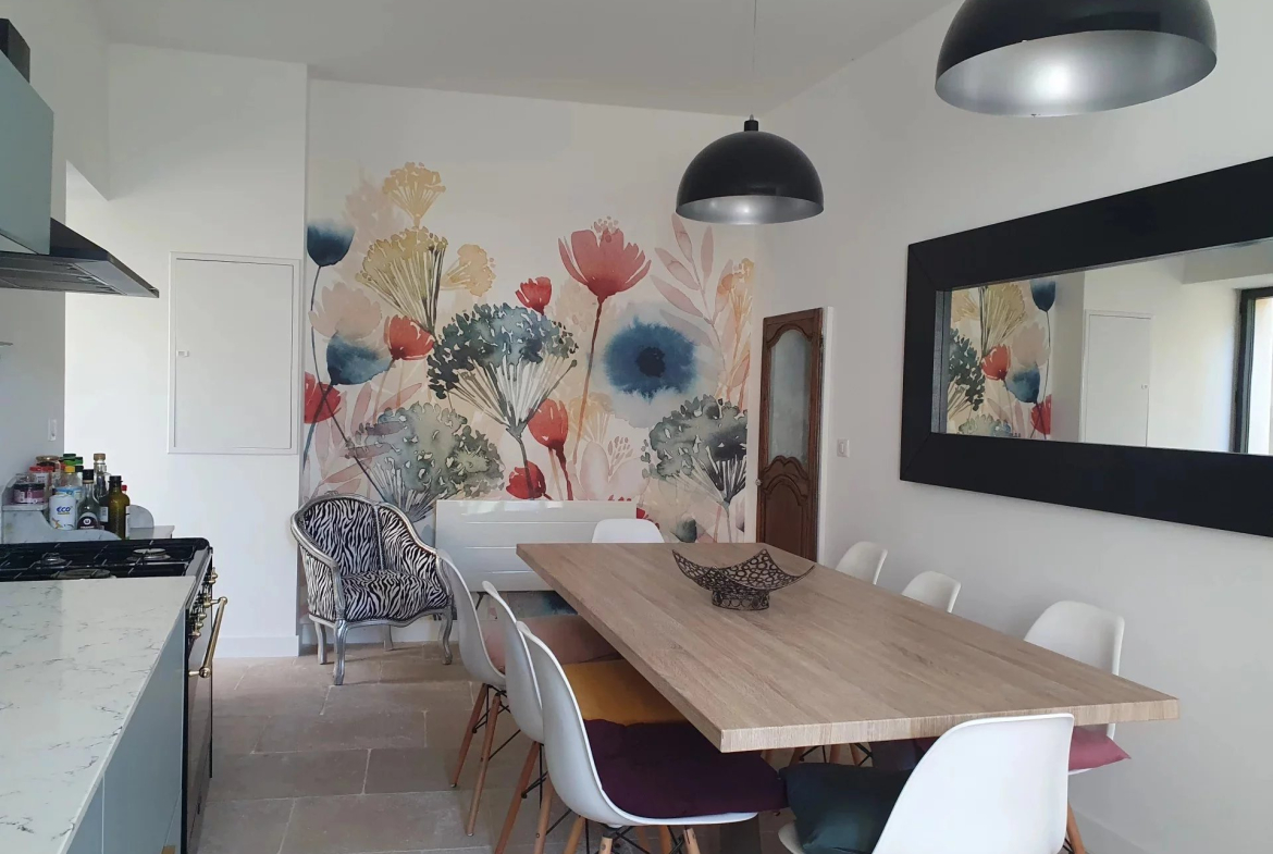 Its 230 m² of living space is spread over two entities: a main house with a large living room with fireplace, family kitchen and five bedrooms including two elegant suites, as well as an independent T4 apartment, bathed in light, with exposed beams and a welcoming terrace.