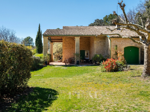 In absolute peace and quiet, in the heart of the Massif d'Uchaux, a 225 m2 house set on a wooded garden of nearly 1 hectare offering a peaceful and natural living environment.