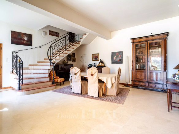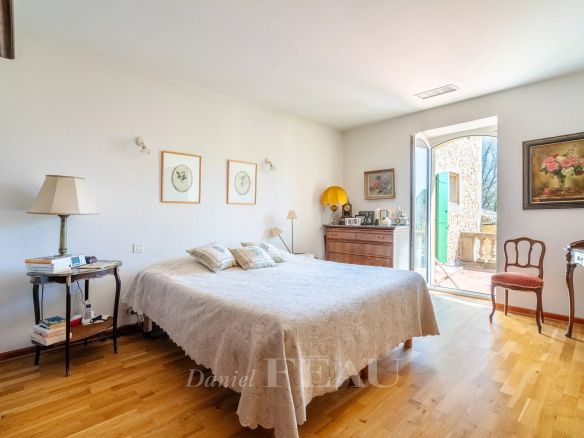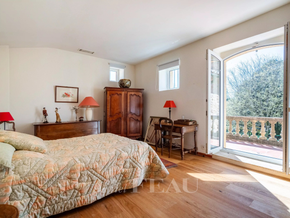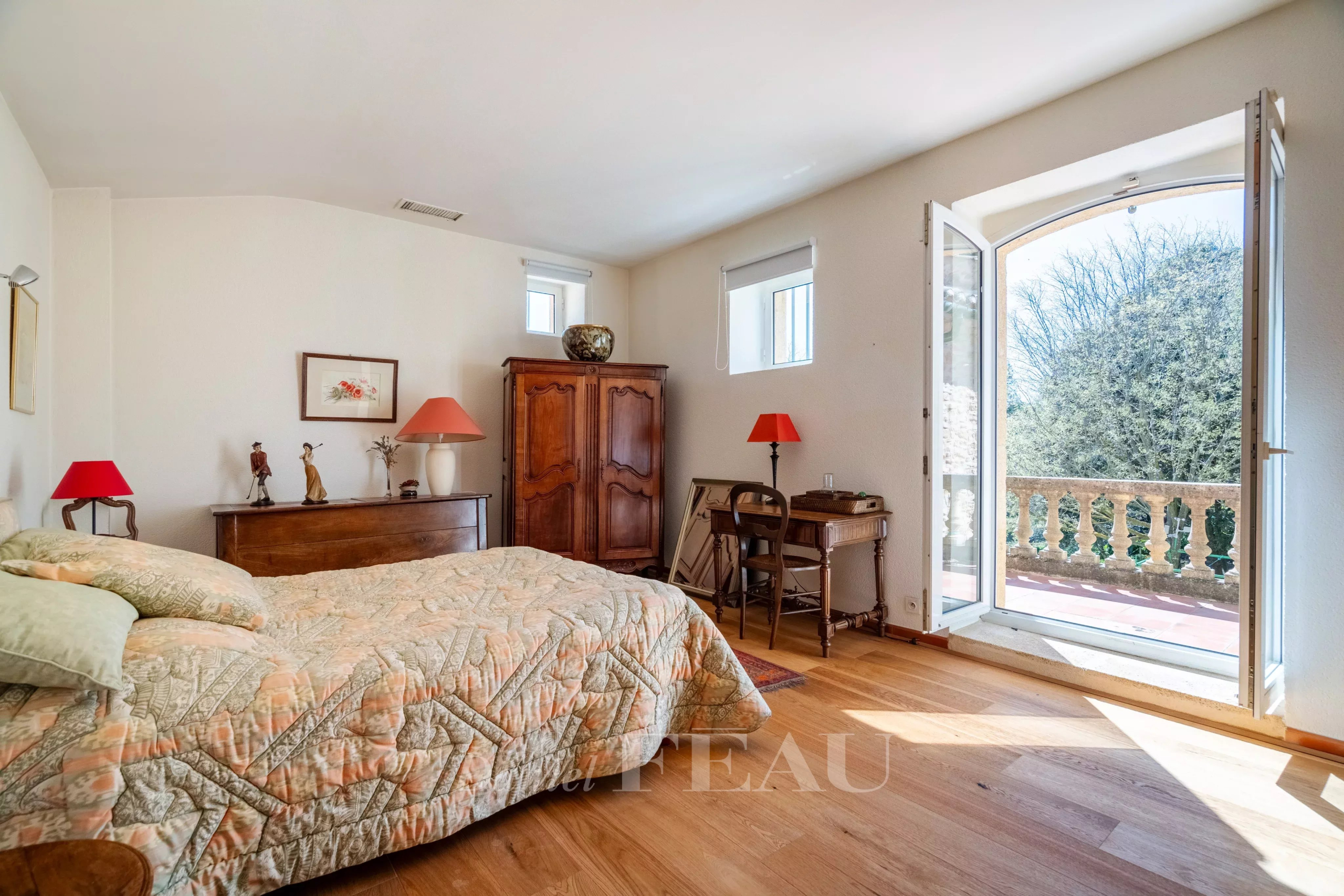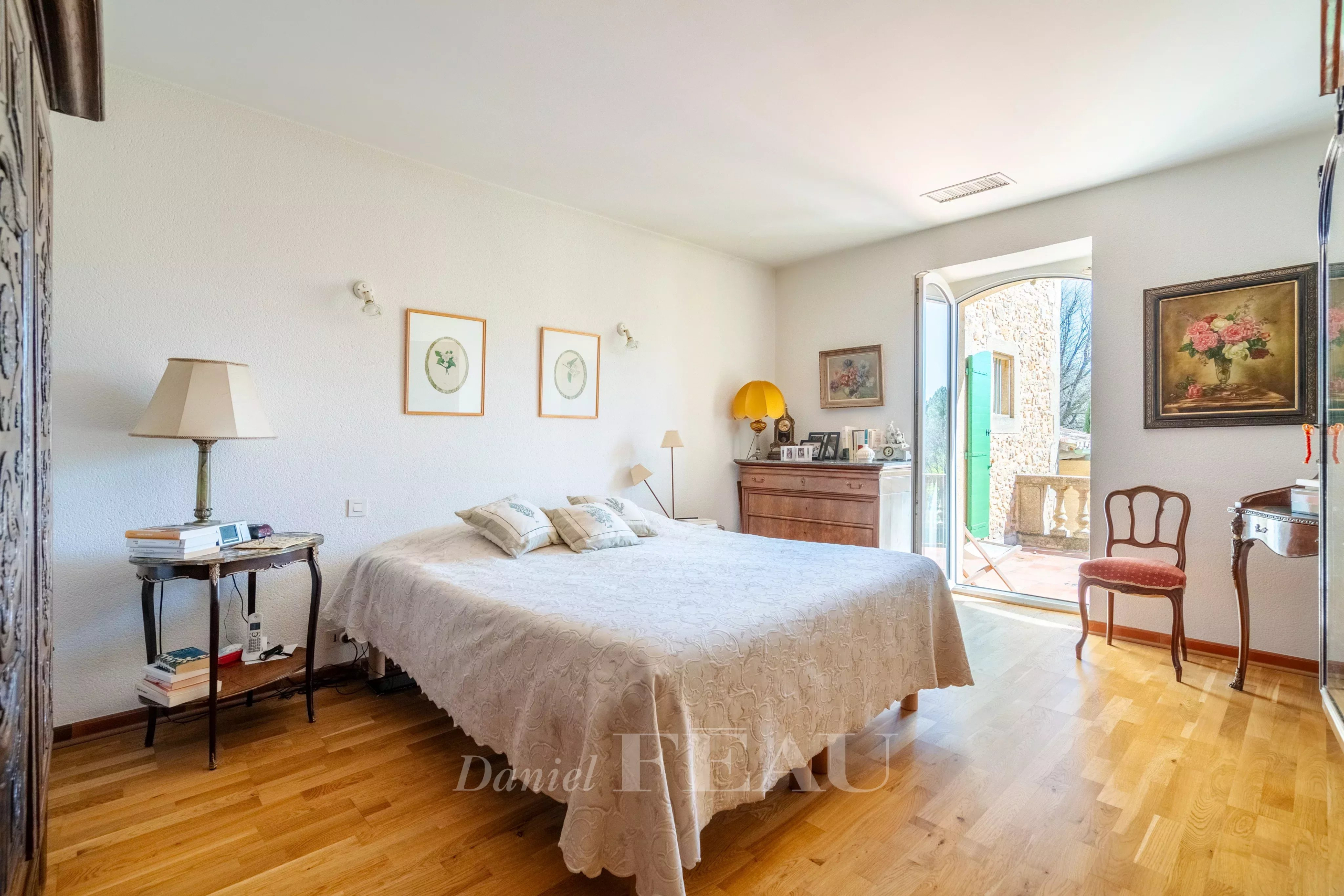 On the garden side, the landscaping and numerous terraces invite relaxation throughout the seasons, in an intimate and secluded setting. The park, extensively wooded and planted with Mediterranean species, features a 12x6m swimming pool, a tennis court, and a pétanque court.