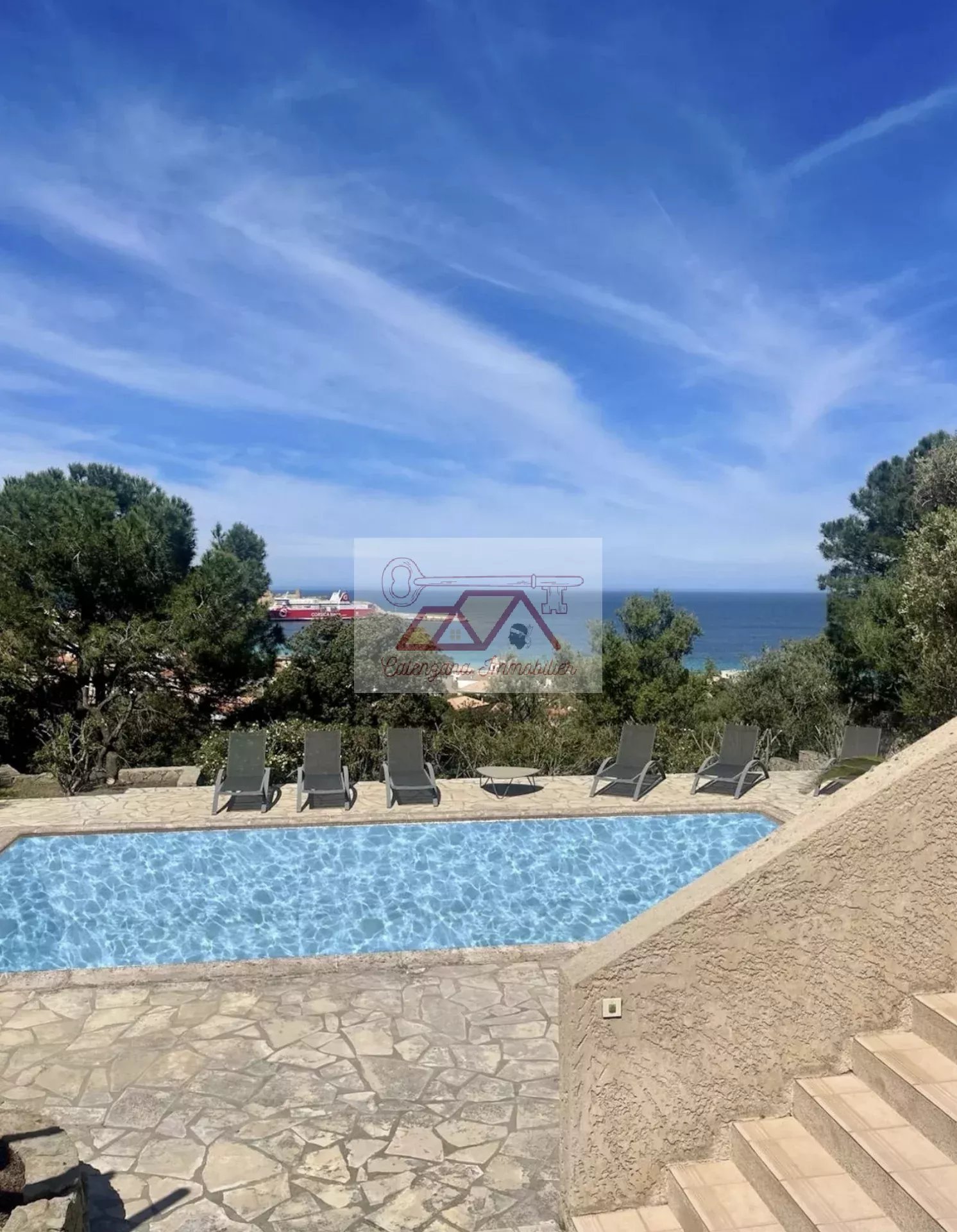 Spacious character house with 125.50 m² of living space (Carrez law), boasting breathtaking views of the sea and the Pietra islands.