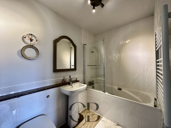 Upstairs, the property is divided into two sections, each with its own staircase. To the east are two bedrooms, each with an en-suite bathroom, and a private suite, also with its own bathroom, located in the west wing. On the west side, a spacious landing, which also serves as a reading area, leads to two generously sized suites, each with an en-suite bathroom, as well as another private suite, also with its own bathroom, located in the east wing.