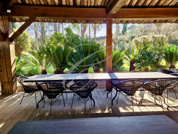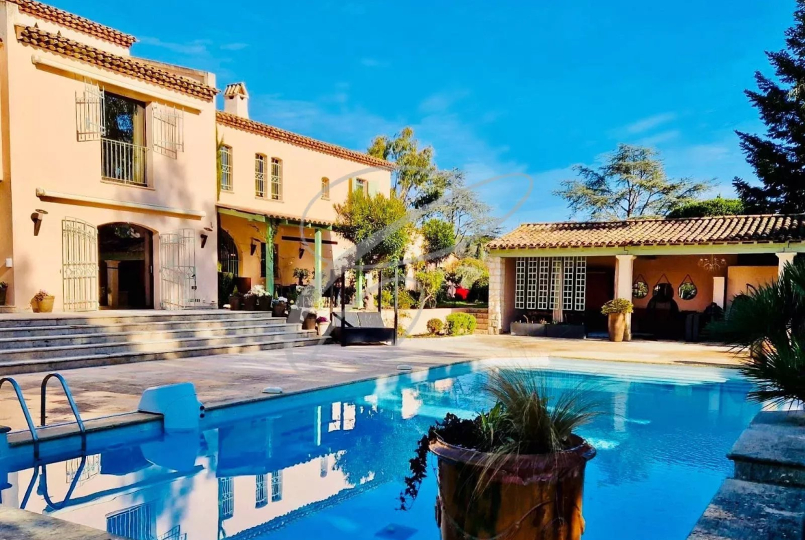 Located in a peaceful, private estate, this magnificent and charming residence sits at the heart of a landscaped park of approximately 7,700 m² with a heated swimming pool, pool house, and tennis court. It offers unobstructed views of the old village of Mougins.