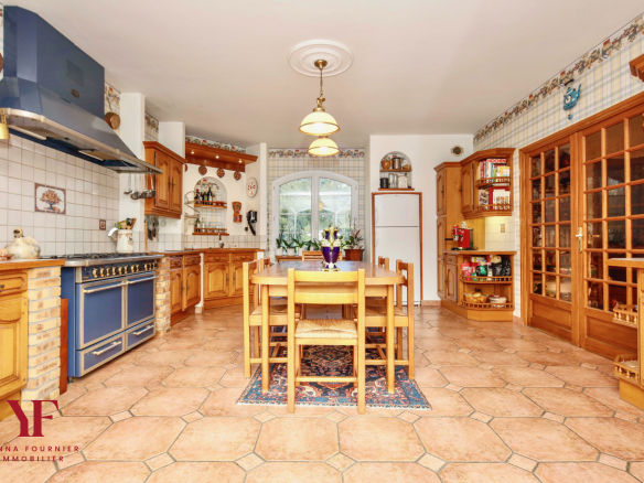From the moment you enter, the house reveals generous proportions and high-quality features. The vast, south-facing living room benefits from remarkable natural light thanks to its large windows opening onto a welcoming terrace, ideal for enjoying an unobstructed view with a glimpse of the Brest harbor. A fireplace with an insert adds to the comfort of the living space during the winter months. The separate, fully fitted and equipped kitchen will delight culinary enthusiasts with its prestigious Godin range cooker, including six gas burners, two hobs, two ovens, and an extractor hood. It also benefits from direct access to the terrace and garden.