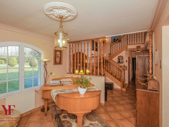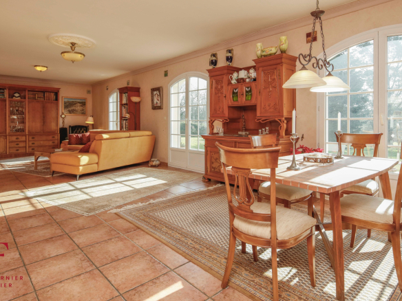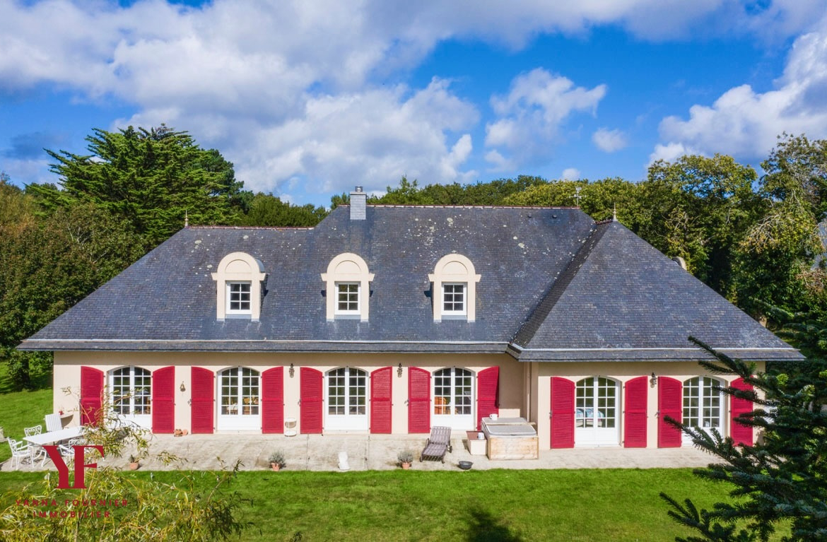 Nestled in the heart of the sought-after town of Dirinon, this magnificent, light-filled character property, built in 1995, immediately captivates with its elegance, its Île-de-France style architecture, and its preserved natural surroundings. Set within approximately 1.6 hectares of wooded grounds, this residence offers a rare living environment, combining absolute tranquility, privacy, and proximity to amenities.