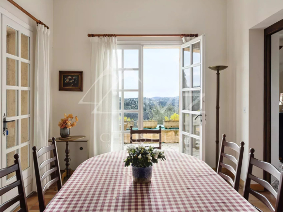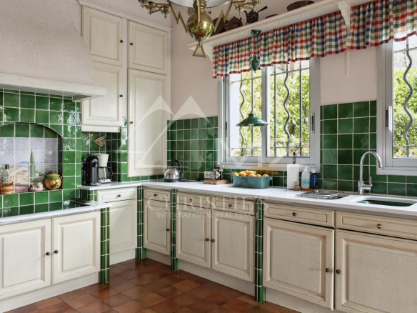This charming 330m² Provençal house sits on a spacious 4250m² plot. Upon entering, you'll be greeted by a turning area and a double garage, leading to the front entrance.