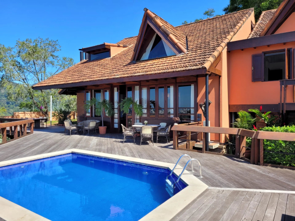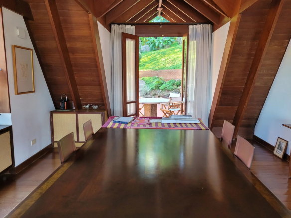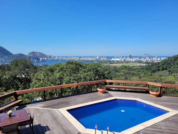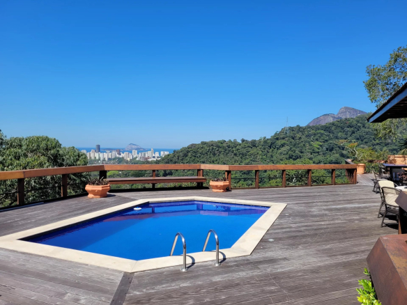In the heart of the marvelous city of Rio de Janeiro, nestled in the hills of the charming Jardim Botânico neighborhood, this chalet-style house offers breathtaking 180-degree views. Located at the end of a cul-de-sac, it provides absolute tranquility, surrounded by nature, on a 1,340 m² plot.