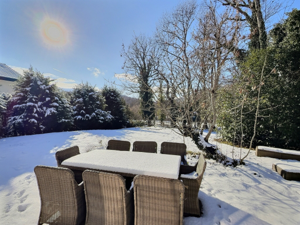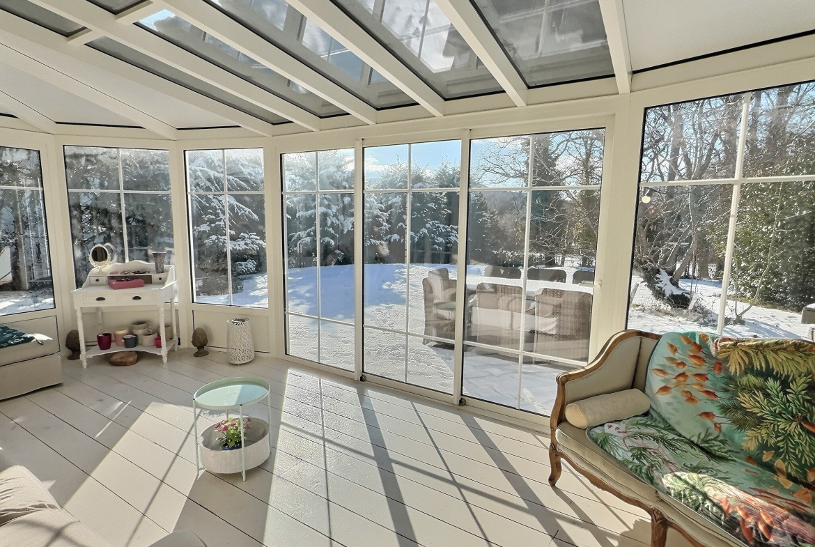 At the foot of the Jura mountains, in a peaceful setting, it benefits from a fenced and wooded plot of 1,250 m2, enhanced with century-old trees, guaranteeing privacy and immersion in nature.