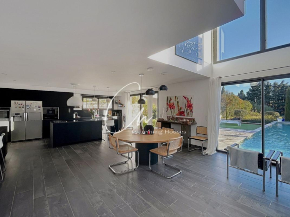 Outside, the enclosed and landscaped garden of 1,650 m² features a large terrace and a swimming pool, creating an ideal setting for relaxation and entertaining.