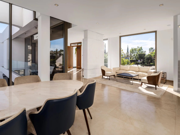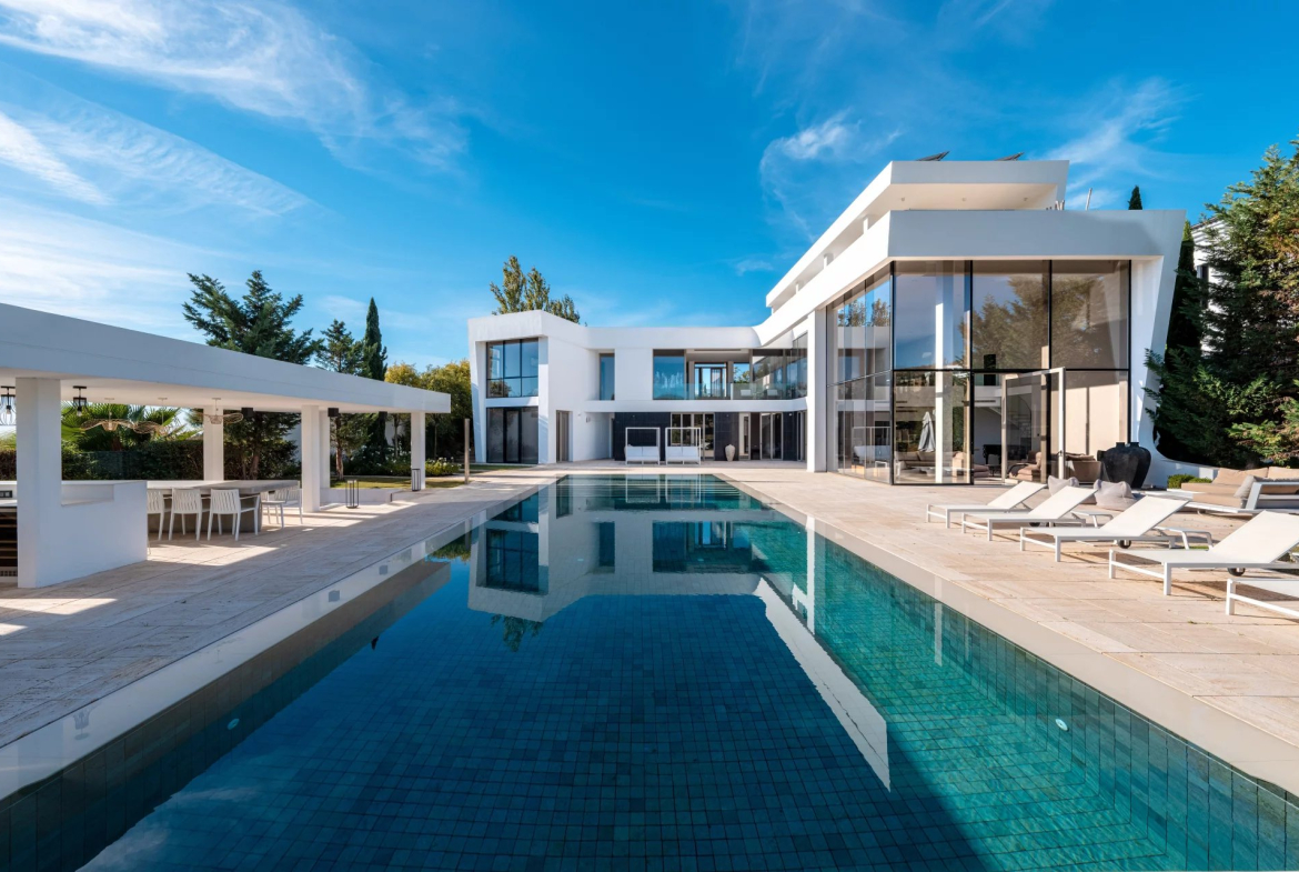 This high-end, contemporary 6-bedroom villa for sale in Los Flamingos, Benahavis, offers a new concept in modern luxury