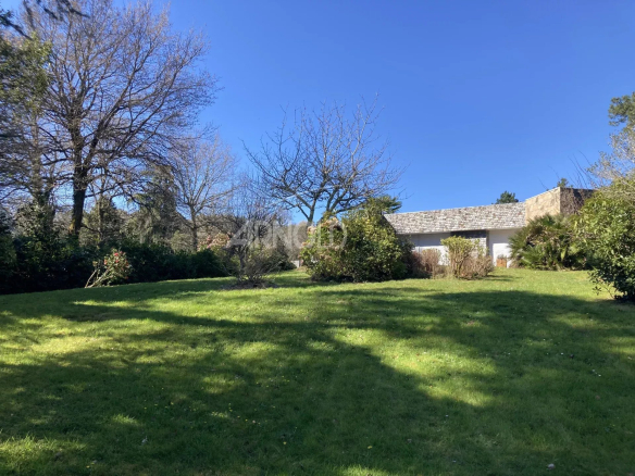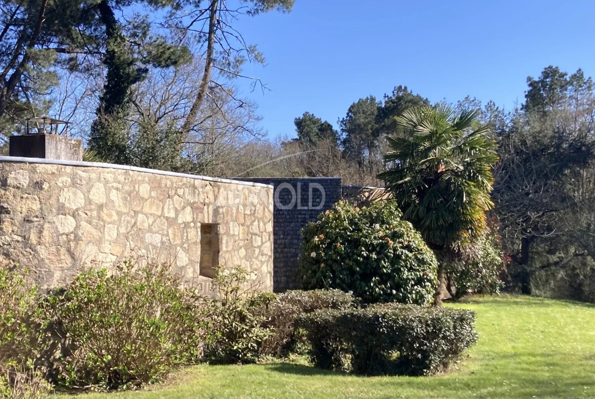 Built on a wooded plot of over 6,000 m² overlooking the river, this beautiful single-story house offers 183 m² of living space, with all rooms arranged around a landscaped patio that floods the space with natural light.