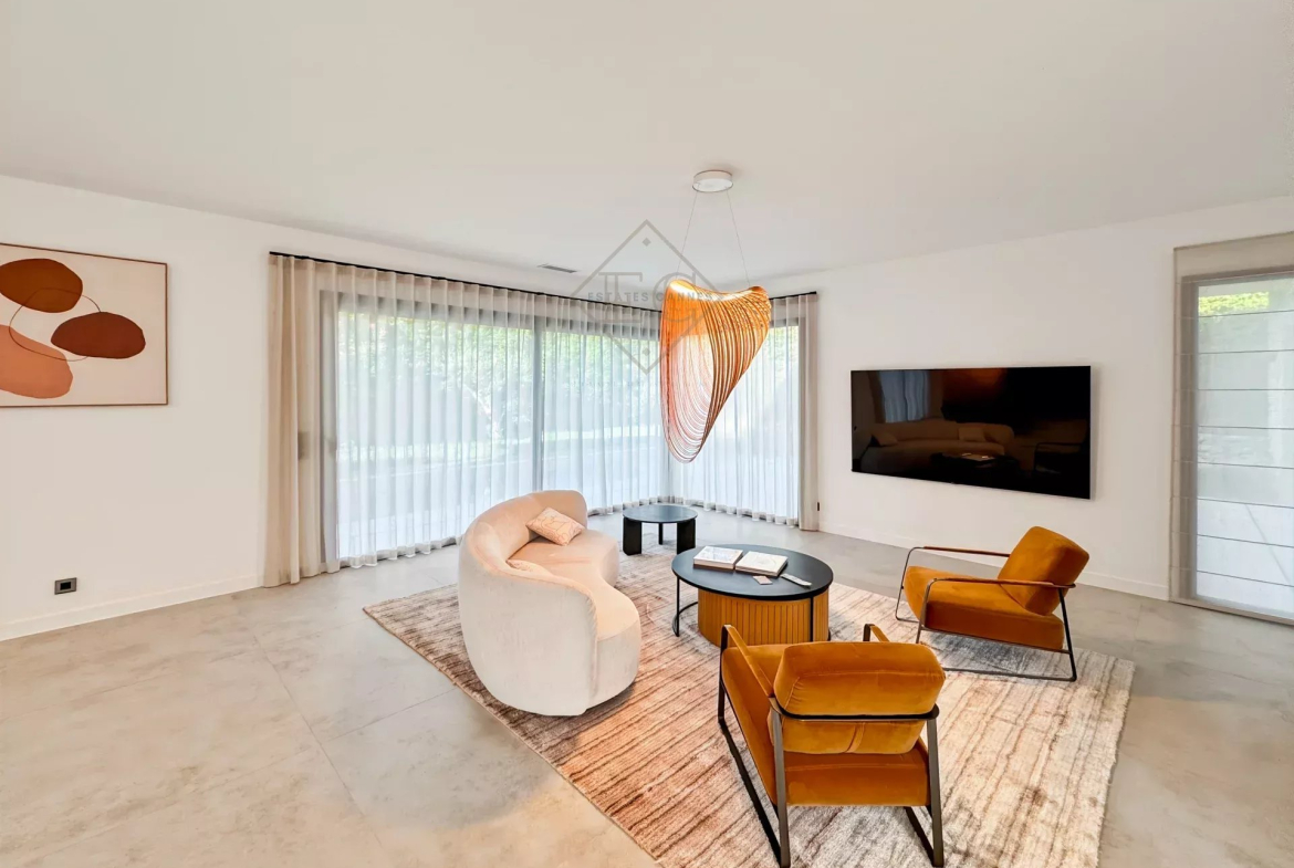 With a surface area of approximately 400 m², built on a flat plot of 1,418 m², this south-facing property offers high-end services and remarkable construction quality. It is sold furnished, with ten-year guarantees and reduced notary fees.