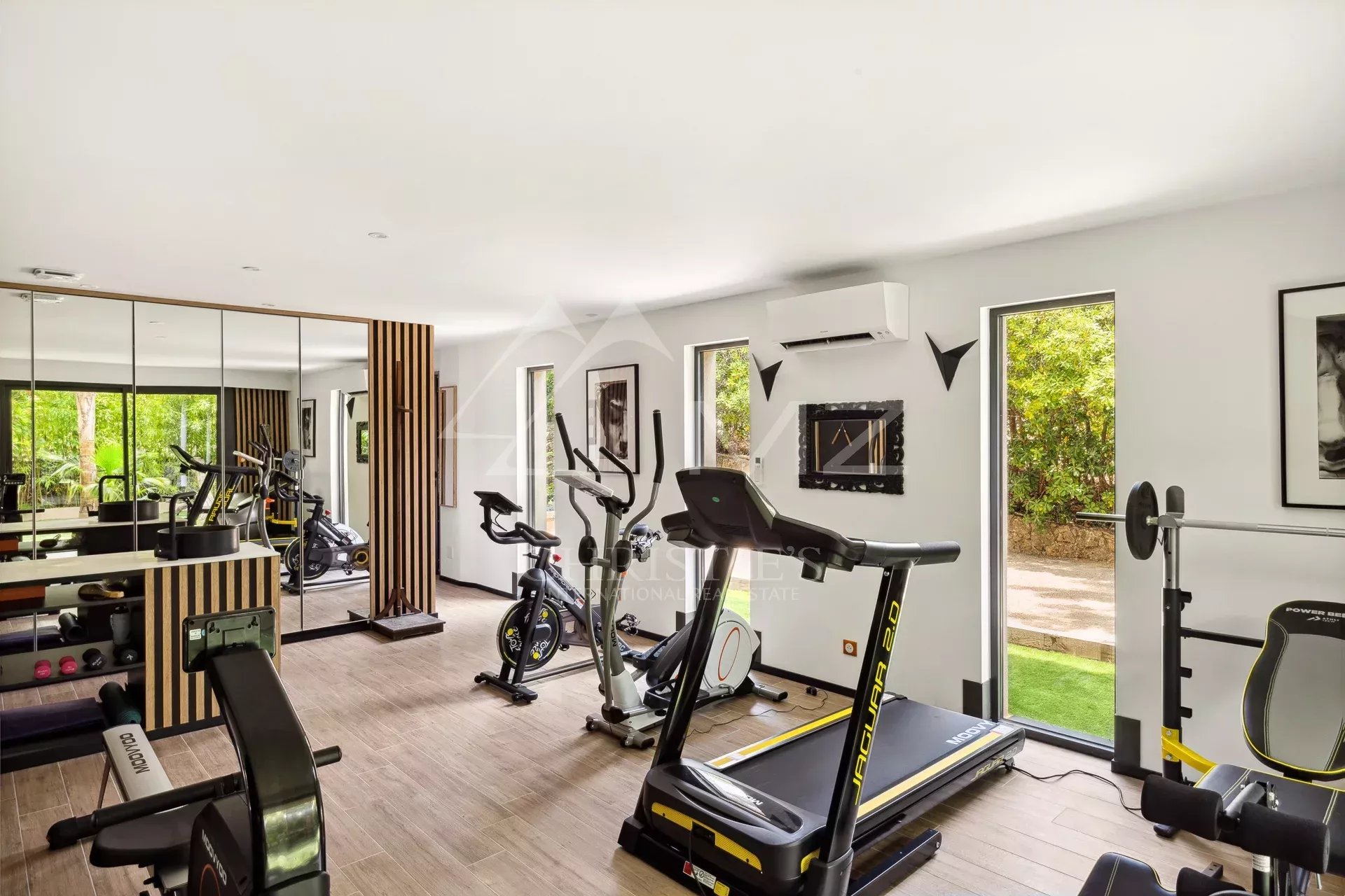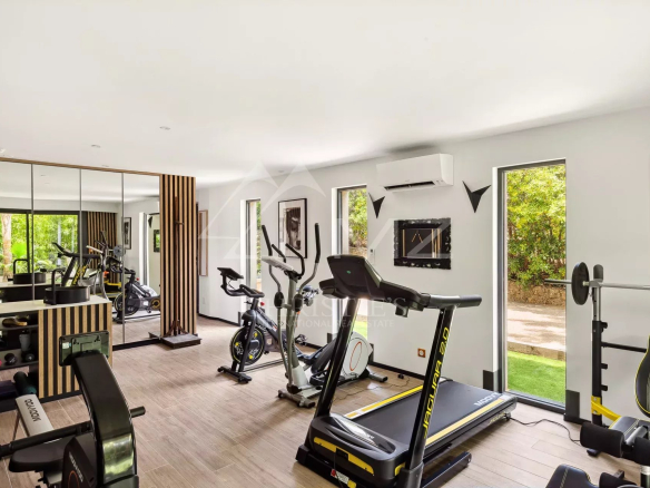 a gym, sauna, laundry room, pétanque court, wine cellar, and 4 parking spaces.