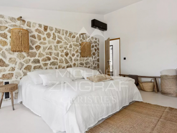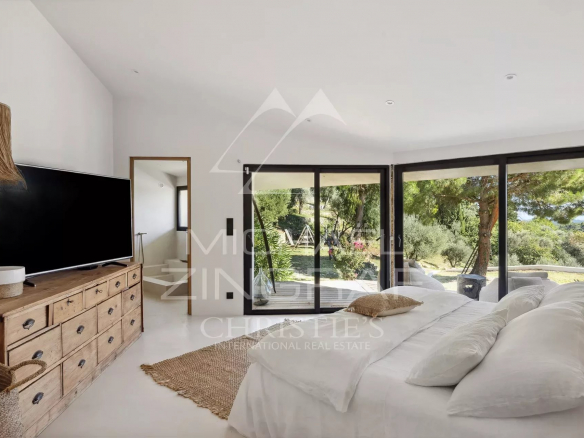 The garden, planted with around sixty olive trees, completes this idyllic setting. The inspiration of the Cyclades blends here with contemporary comfort, in a calm, elegant, and ready-to-live-in space.