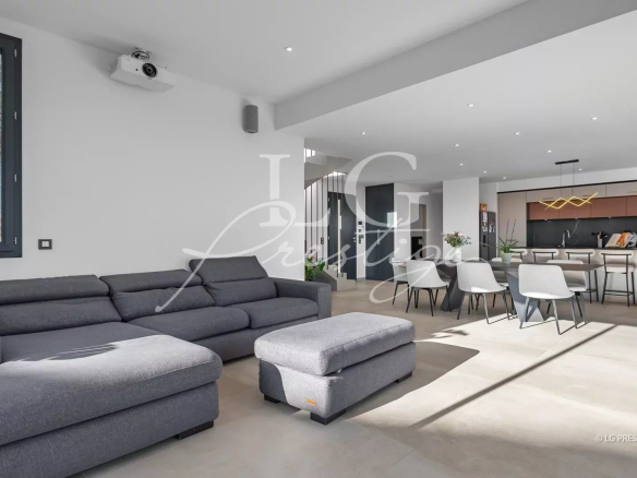 Situated on a 1,380 m² plot with a garage, the property benefits from planning permission for a swimming pool, photovoltaic panels, and a semi-automated home automation system.