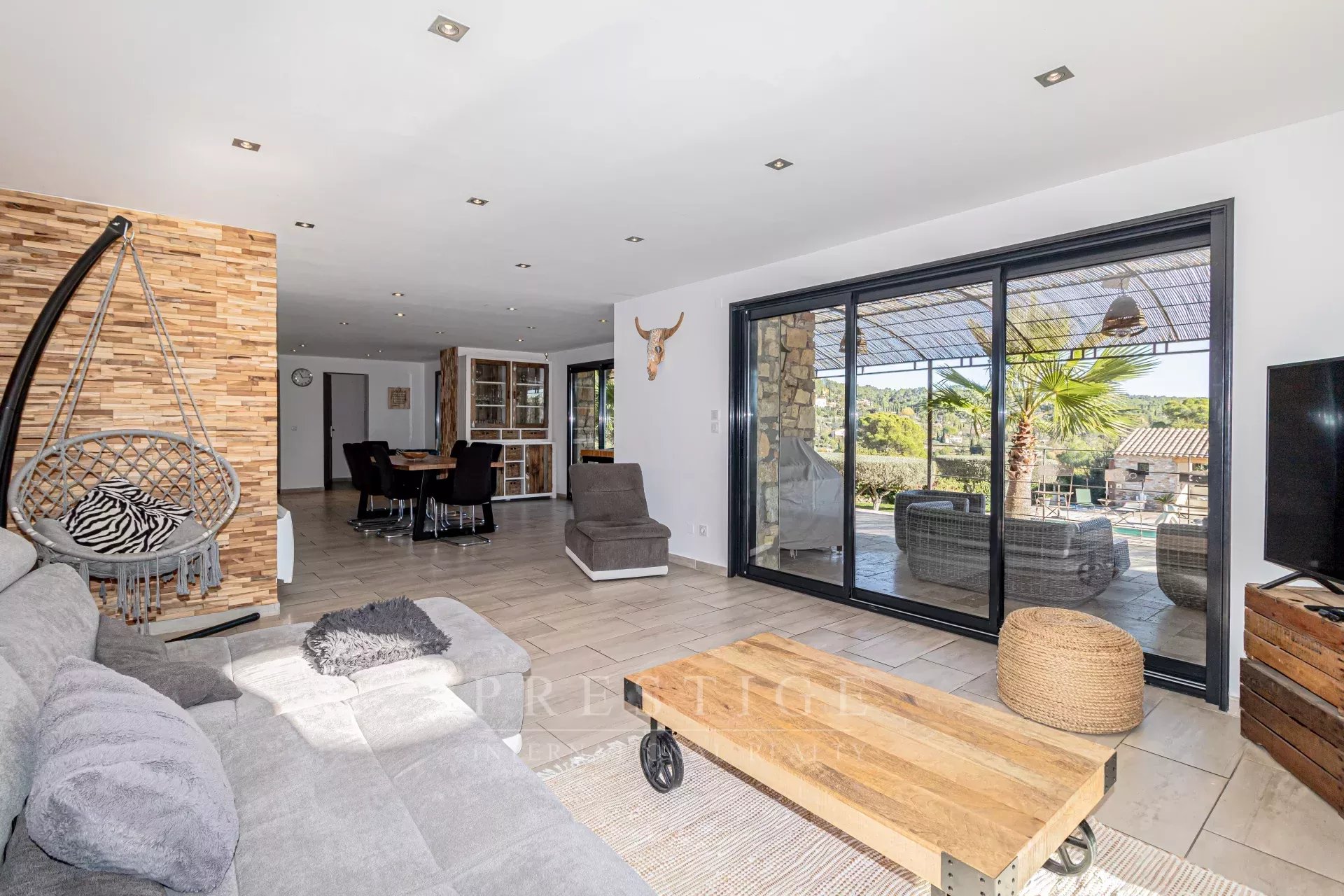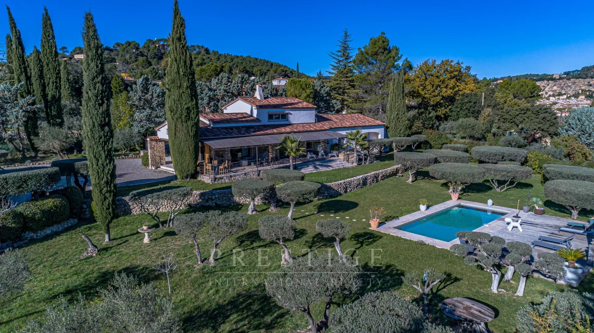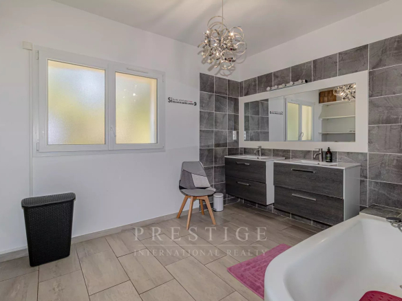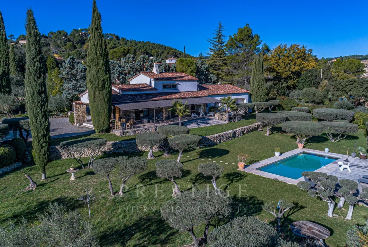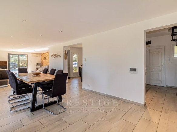 Just a 3-minute walk from Cotignac, listed among the most beautiful villages in France, in the heart of the Var region, and boasting panoramic views of the village and surrounding countryside, we are offering this splendid, modern, and contemporary villa for sale. It offers a dreamlike and peaceful living environment, in absolute tranquility and with no overlooking neighbors. Built on a flat, enclosed 5,000 sq m plot featuring 50 olive trees,