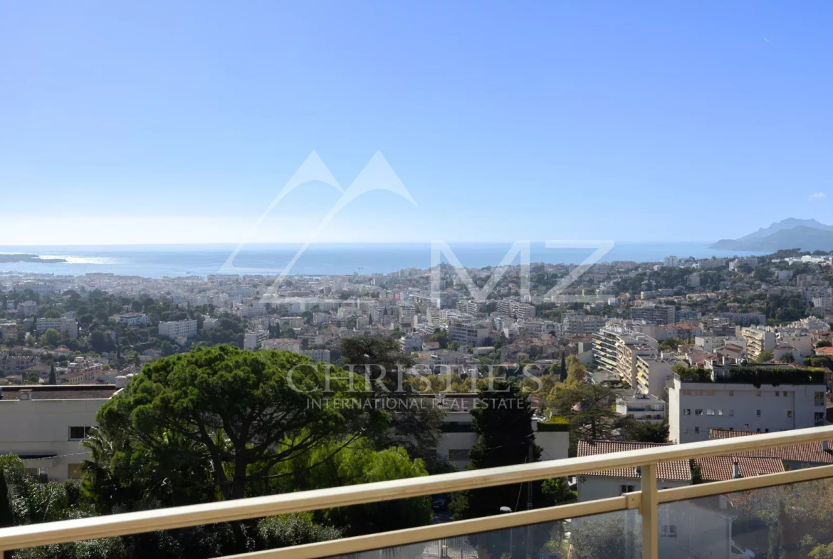 This fully renovated 185 sq m penthouse offers refined amenities and a large 150 sq m terrace with panoramic views of the sea and the Esterel mountains. Accessible by a private elevator, this bright living space comprises a spacious living room with large bay windows, allowing you to fully enjoy the breathtaking views. A beautiful fireplace adds a warm touch to this space.