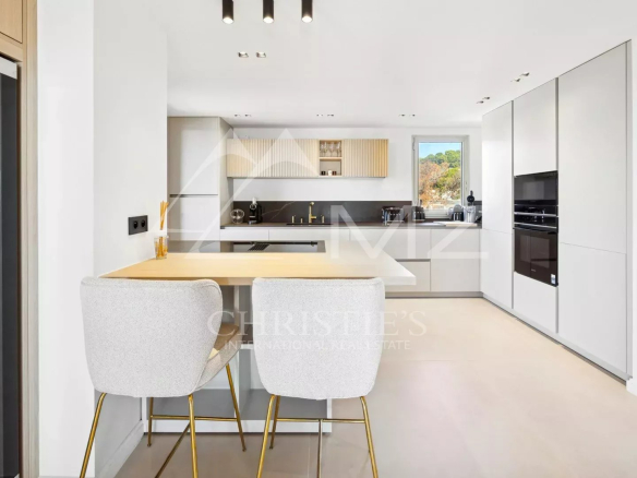 This fully renovated 185 sq m penthouse offers refined amenities and a large 186 sq m terrace with panoramic views of the sea and the Esterel mountains. Accessible by a private elevator, this bright living space comprises a spacious living room with large bay windows, allowing you to fully enjoy the breathtaking views. A beautiful fireplace adds a warm touch to this space.